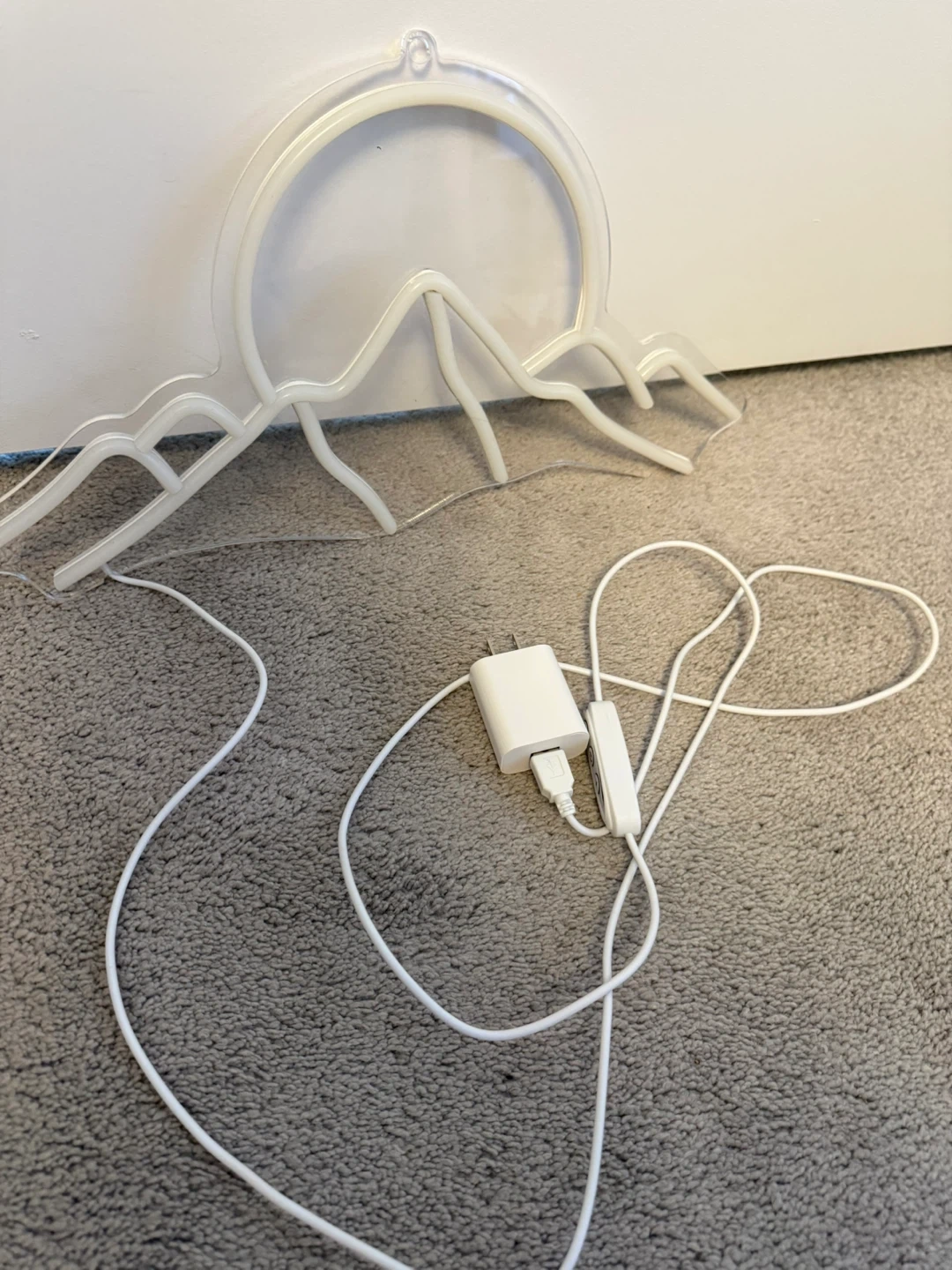 This neon sign features a mountain range with a sunset. It has a dimmer switch for adjustable brightness. Great for a bedroom or living room vibe!