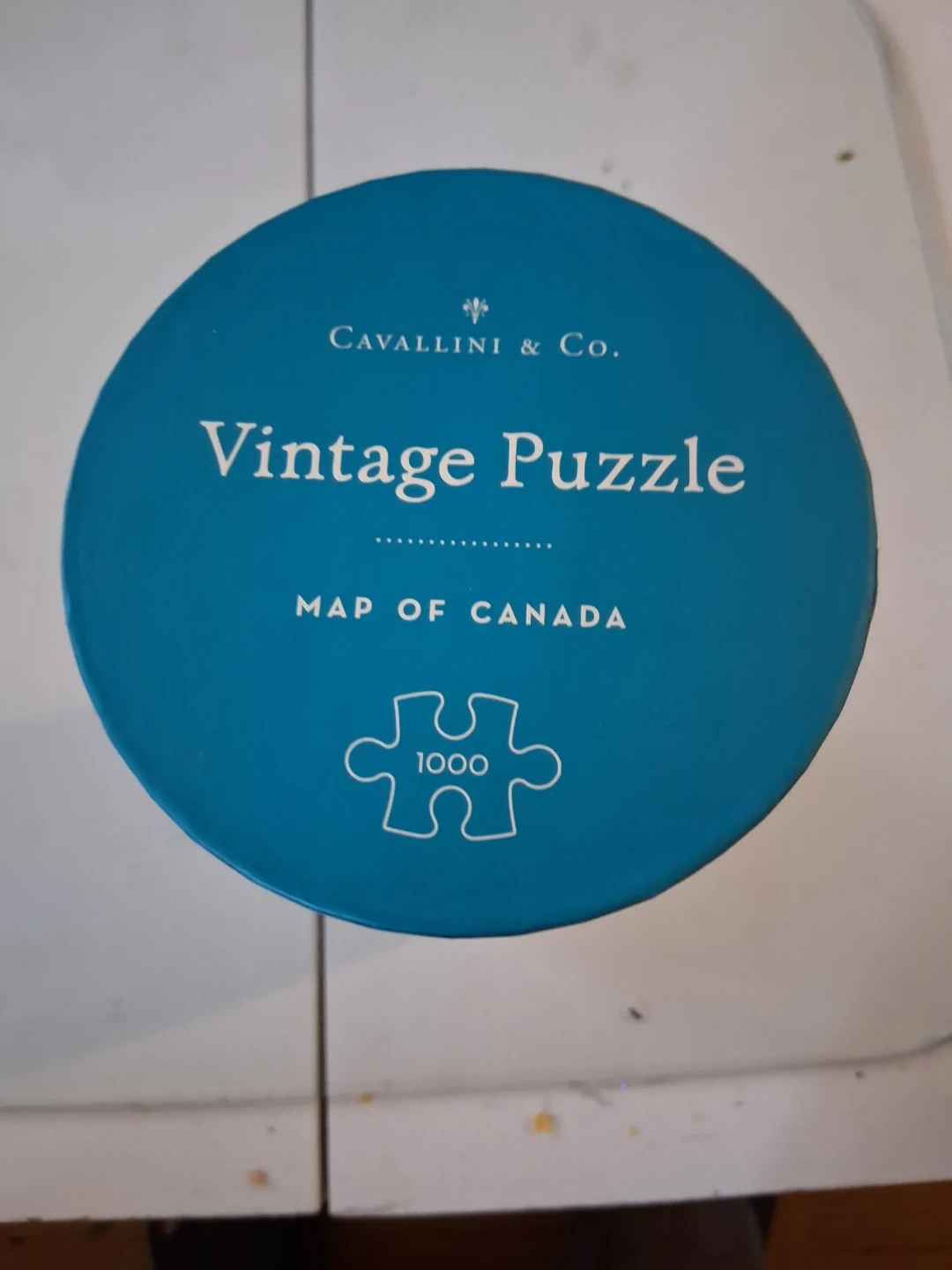 Selling a Cavallini & Co. Vintage Puzzle, featuring a detailed map of Canada. It's a 1000-piece puzzle and comes in its original packaging.