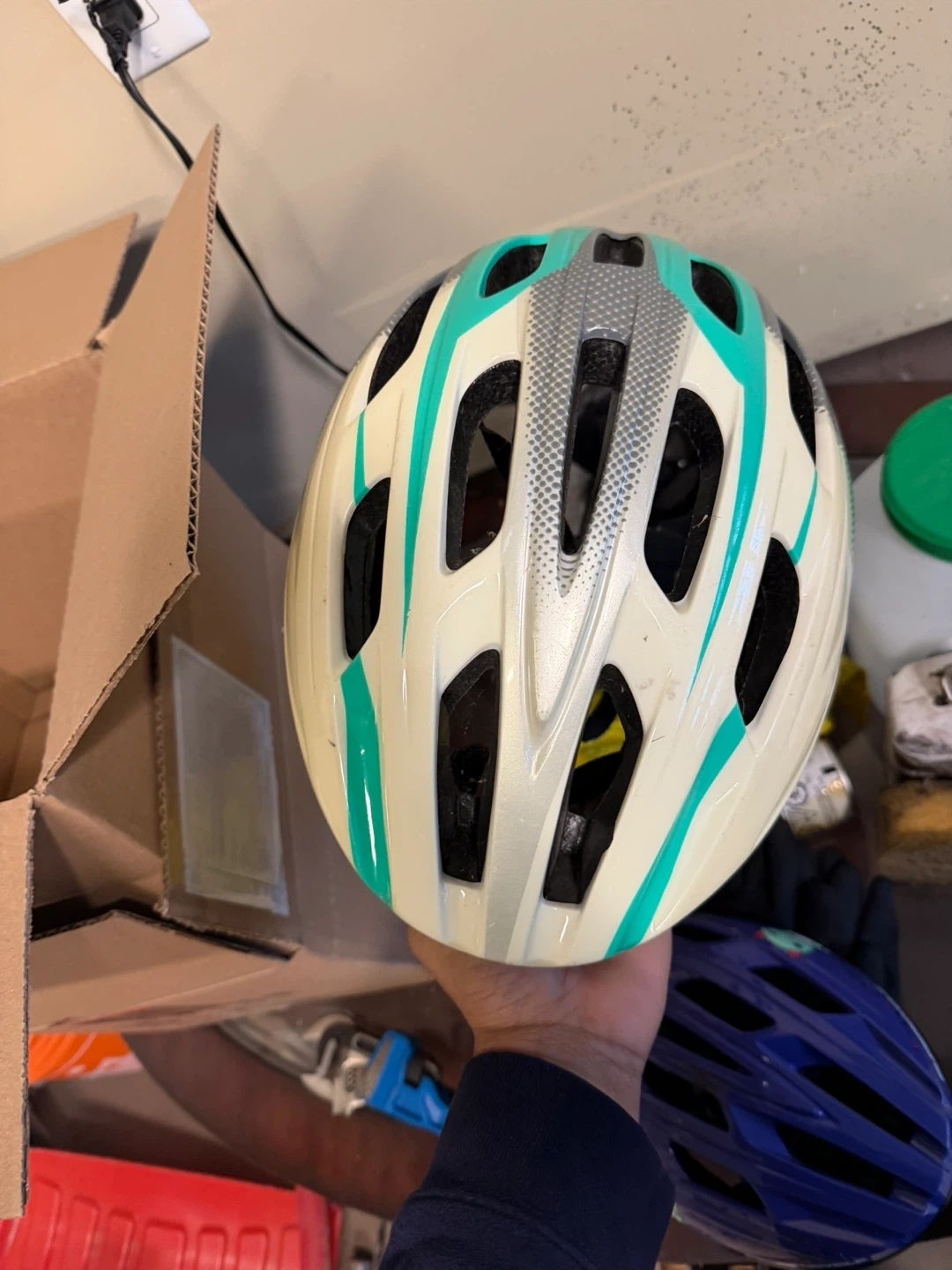 Buy & SellWhite and Teal Cycling HelmetWhite and Teal Cycling Helmet$15This cycling helmet is white with teal and silver accents. It features a ventilated design for comfort. Protect your head while biking!WHERE TO MEETCourticeView MapSELLERJubinCourtice261 review0 chats·0 favorites·1 viewsSEND CHAT TO SELLERHi Jubin! I’m interested in your listing.Hi Jubin! I’m interested in your listing.Get the Karrot app to chatSign In to chat