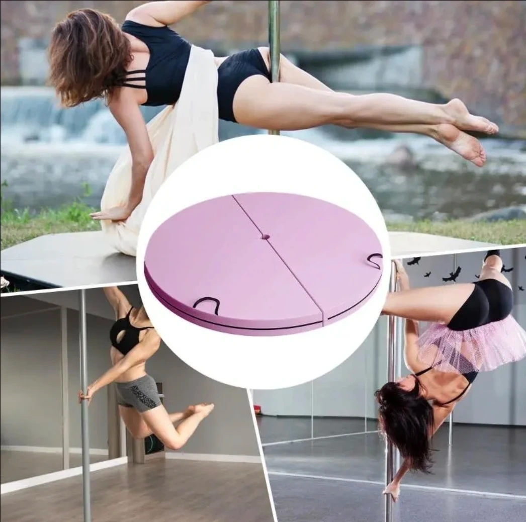 This is a pink pole dancing stage base platform. It measures 120cm in diameter and 3cm in height. This base is designed for pole fitness and dance. It's made of durable materials. 🧡