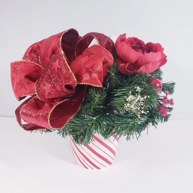 β’ Includes | Porcelain Red and White Candy Cane Striped Vase