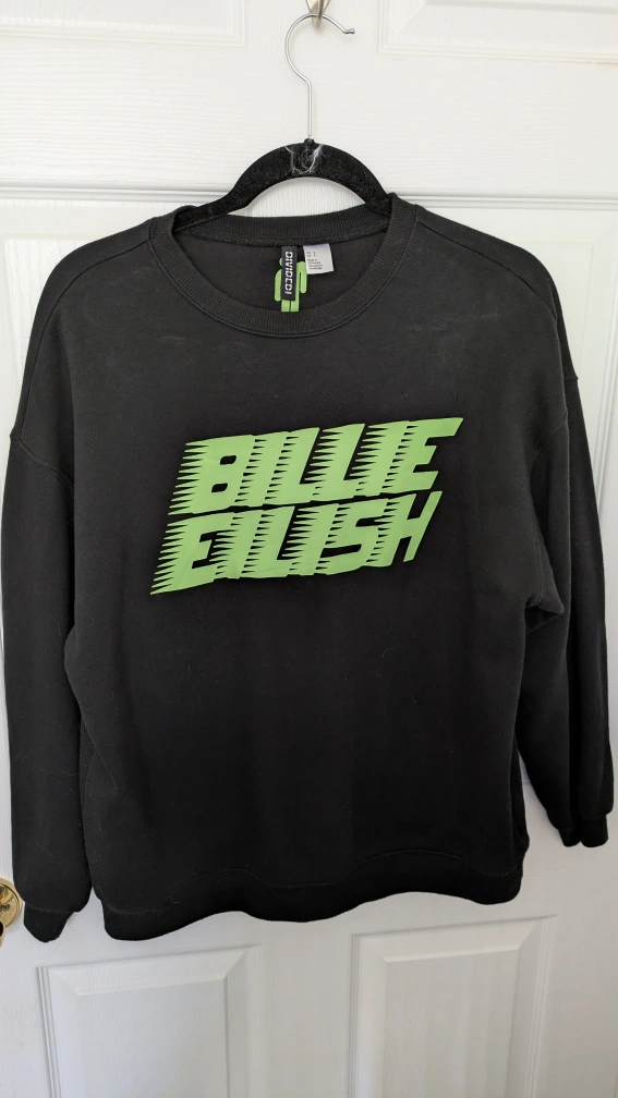 Cozy H&M Divided sweatshirt featuring Billie Eilish in a cool green graphic sweater, great condition, worn only once. Perfect for any Billie Eilish fan!