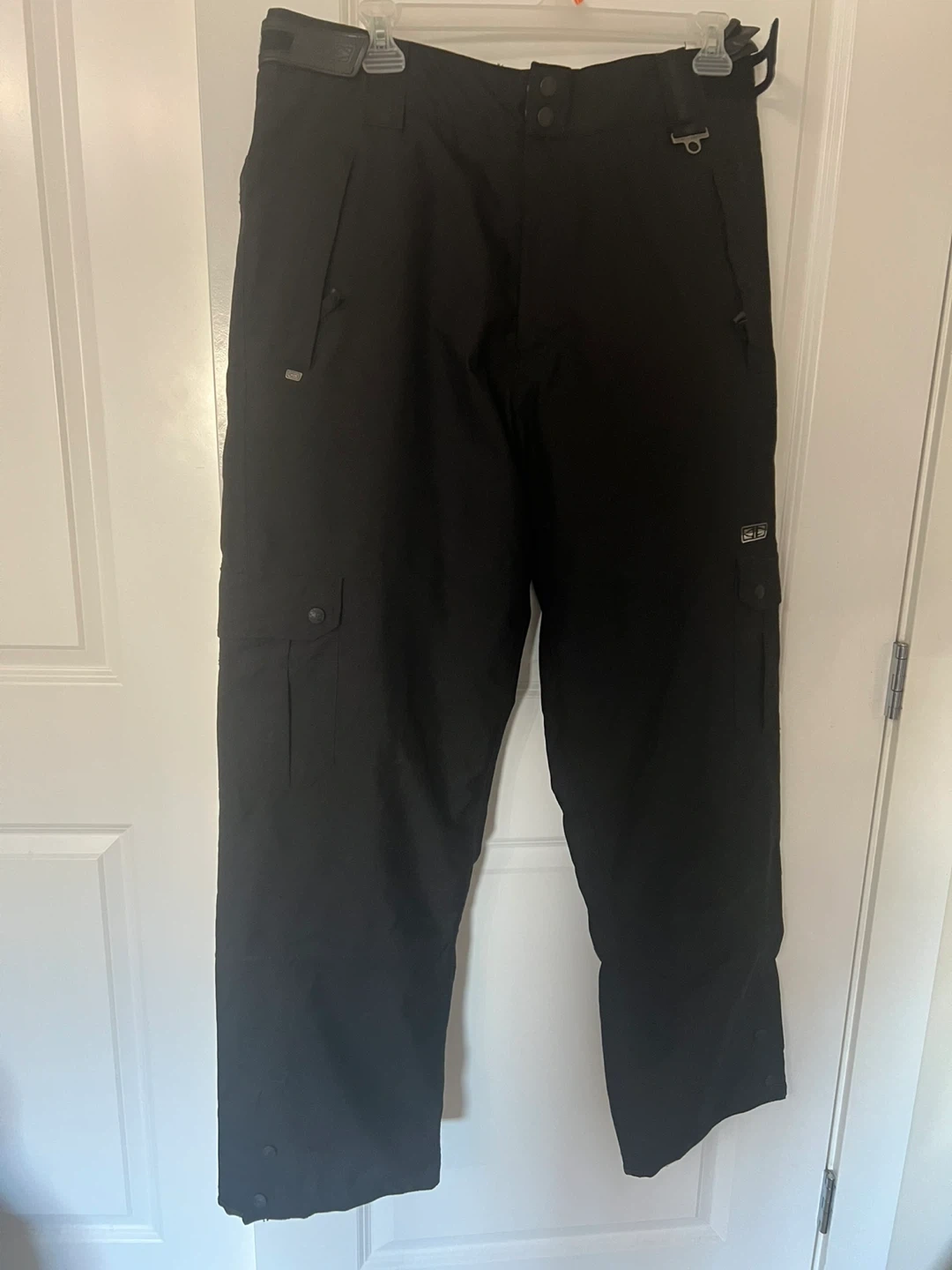 EUC - Size XL, Black in color, worn twice. Performance-oriented, straight-leg cut. Water-resistant polyester outer shell with a warm fleece lining. Reinforced stress areas. Equipped with cargo pockets, zippered hand pockets, and rear pockets. Adjustable Velcro waistband for a custom fit. Inseam is approx 32 1/2β