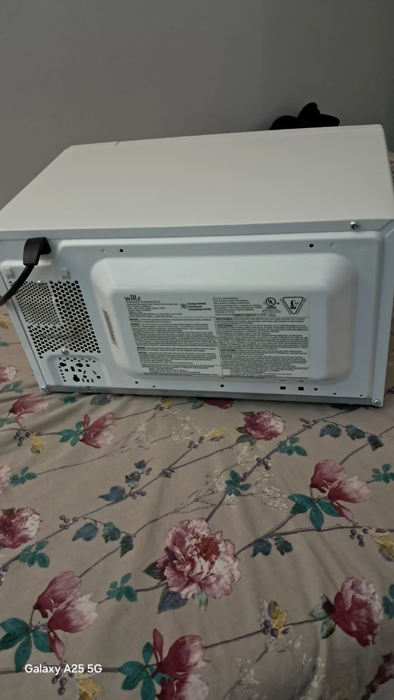 White compact microwave oven. It has several preset cooking options and a digital display. Perfect for small kitchens or dorm rooms! Delivery also available depend on distance a little bit charges