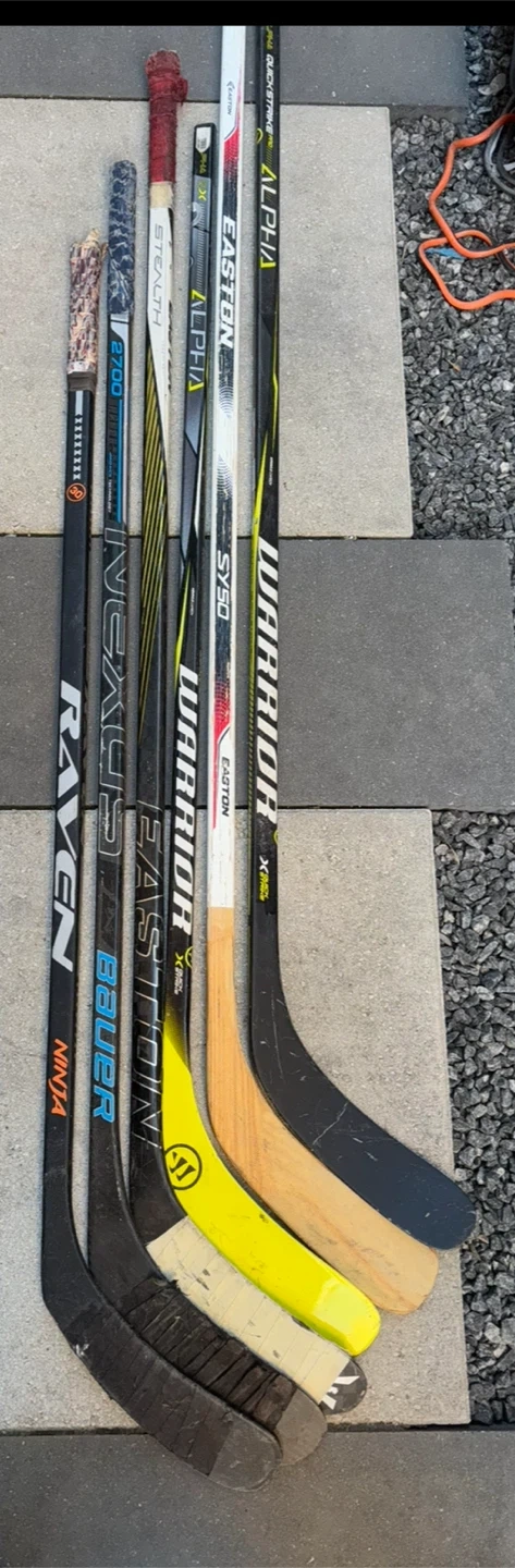 Selling a collection of used hockey sticks! Brands include Raven Ninja, Bauer Nexus 2700, Easton Stealth, Easton Alpha, and Warrior Alpha Quickstrike. Great for practice or recreational play!