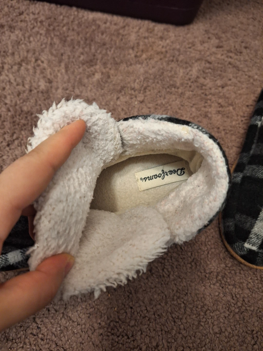 Buy & SellUnisex: Dearfoams Plaid Slippers - Size Medium (7-8 US)Unisex: Dearfoams Plaid Slippers - Size Medium (7-8 US)$5Pick up only! Here are a pair of Dearfoams slippers in a plaid pattern. They are a size medium. SIZE US 7-8 24.5-25 CMConditionLike newBrandDearfoamsWHERE TO MEETYonge and FinchView MapSELLERverifiedHanFinch1378 reviews0 chats·0 favorites·11 viewsSEND CHAT TO SELLERHi Han! I’m interested in your listing.Hi Han! I’m interested in your listing.Get the Karrot app to chatSign In to chat