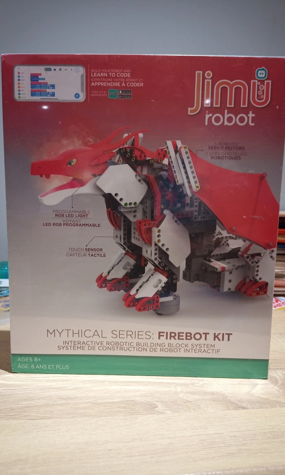 Brand new never opened Jimu Robot Mythical Series FireBot Kit! It's an interactive robotic building block system that lets kids learn to code. The kit includes servo motors, gears, connectors, wires, and a free Jimu app. Suitable for ages 8+
