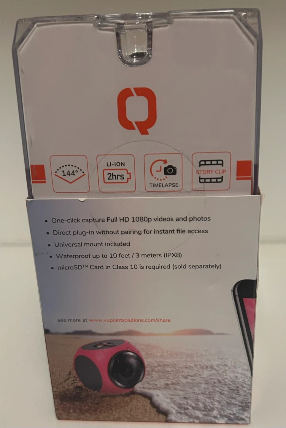 Selling a VuPoint Share camera with a lightning connector. It's in its original box and looks to be in great condition! It can capture full HD 1080p videos and photos with one click. It also has direct plug-in without pairing for instant file access. It's waterproof up to 10 feet / 3 meters (IPX8).