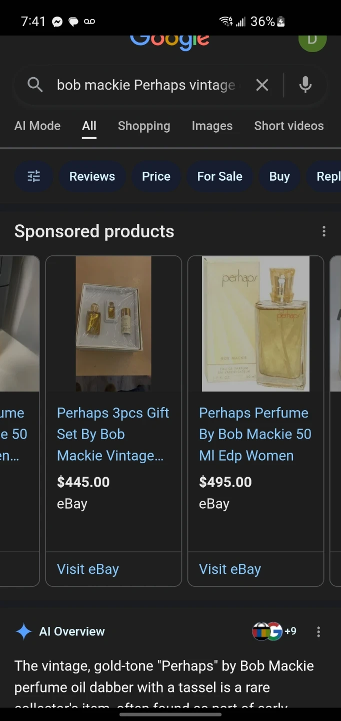 14k gold plated over metal 7ml 'Mackie' Parfum oil in the scent 'Perhaps' it is full never used. The 'Perhaps' oil perfume scent is very hard to come by.