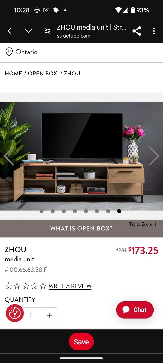 TV stand with 2 drawers and 2 cabinet doors. 1 open shelf. Black metal legs.