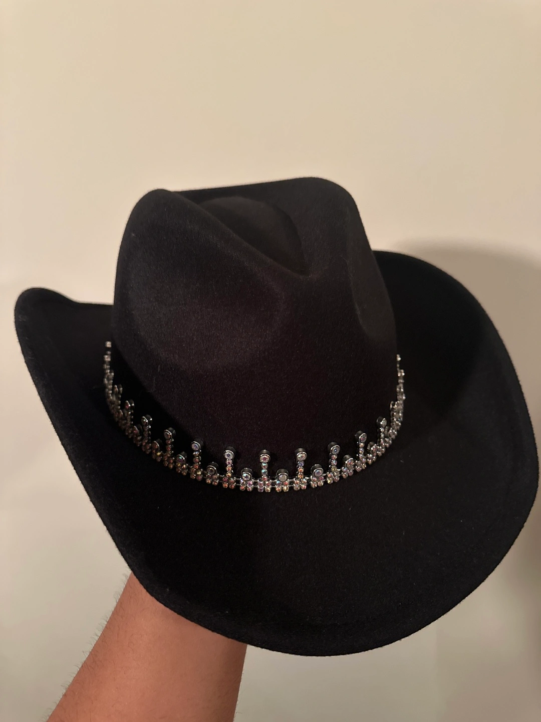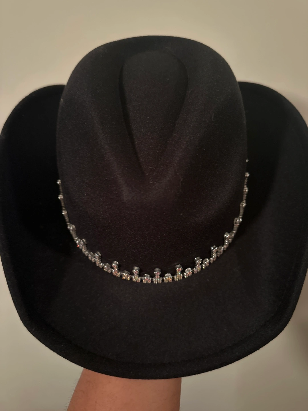 Buy & SellBlack Rhinestone Cowboy HatBlack Rhinestone Cowboy Hat$20Black felt cowboy hat with a rhinestone band. Perfect for a night out or a costume party. Worn only once for a couple hours.ConditionNewWHERE TO MEETGrand trunk crescentView MapSELLERverifiedRomaHarbourfront913 reviews0 chats·0 favorites·22 viewsSEND CHAT TO SELLERHi Roma! I’m interested in your listing.Hi Roma! I’m interested in your listing.Get the Karrot app to chatSign In to chat