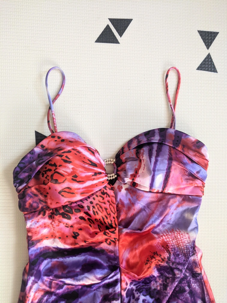 New Laura Petites Satin Printed Sweetheart Neckline Prom Dress