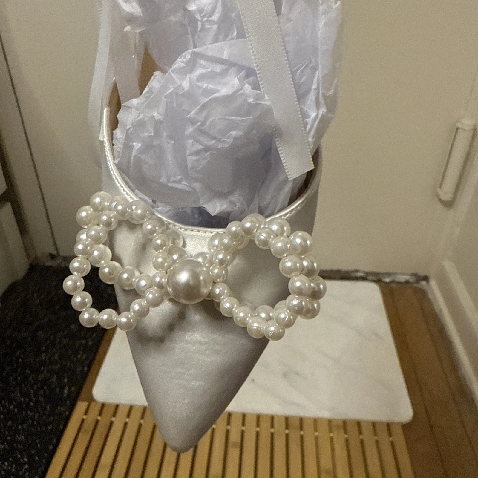 1 / 71 / 7Buy & SellWomen's Size 8.5 White Pearl Wedding High Heel ShoesWomen's Size 8.5 White Pearl Wedding High Heel Shoes$18.82Brand new, never worn. Features a pointed toe, buckle closure, and elegant straps. Perfect for a wedding or bridal event. Upper material is synthetic.WHERE TO MEETCheck LocationView MapSELLERverifiedPaulyyJackson Heights600 reviews0 chats·0 favorites·36 viewsSEND CHAT TO SELLERHi Paulyy! I’m interested in your listing.Hi Paulyy! I’m interested in your listing.Get the Karrot app to chatSign In to chat