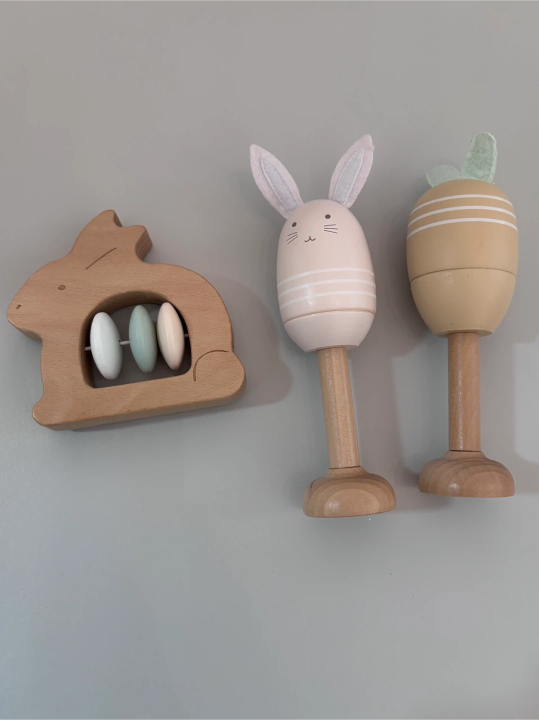 Pottery Barn Kids - Wooden Bunny Maraca & Jingle Wooden Set