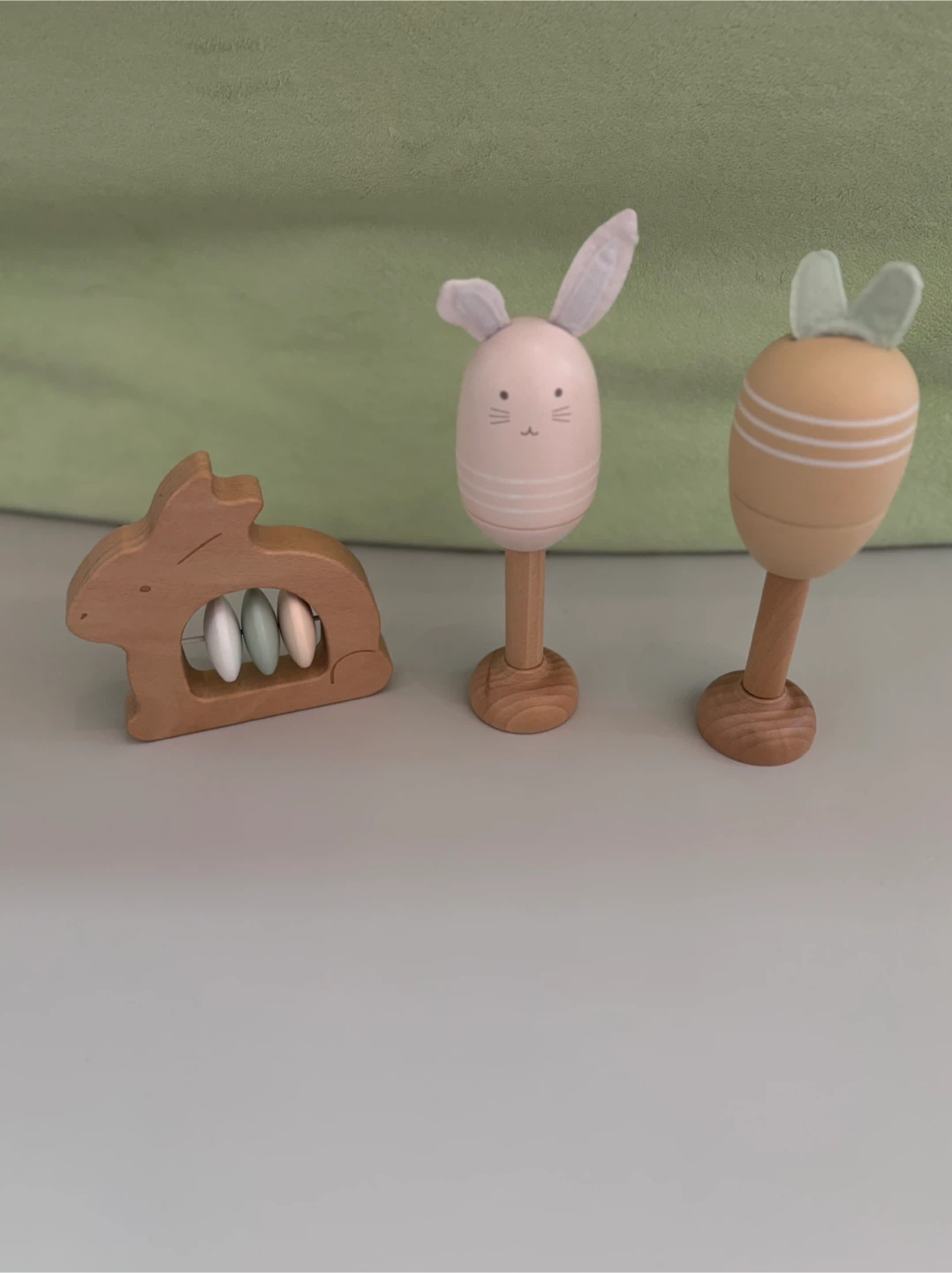 Pottery Barn Kids - Wooden Bunny Maraca & Jingle Wooden Set