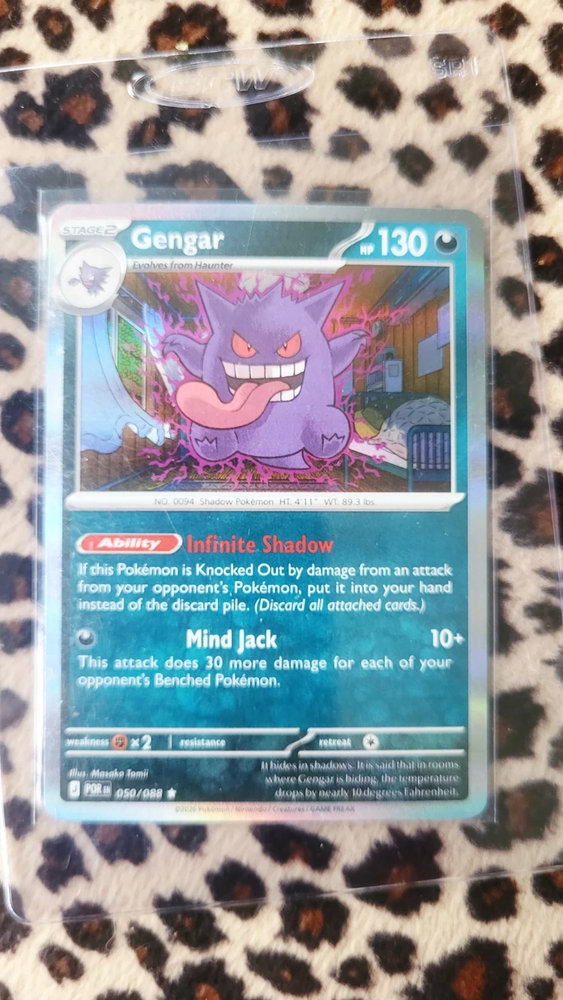 This is a Gengar Pokemon card from the "Infinite Shadow" set. It has 130 HP and the ability Infinite Shadow. This card might be useful for collectors or players of the Pokemon Trading Card Game. Reverse holo Mint condition $5