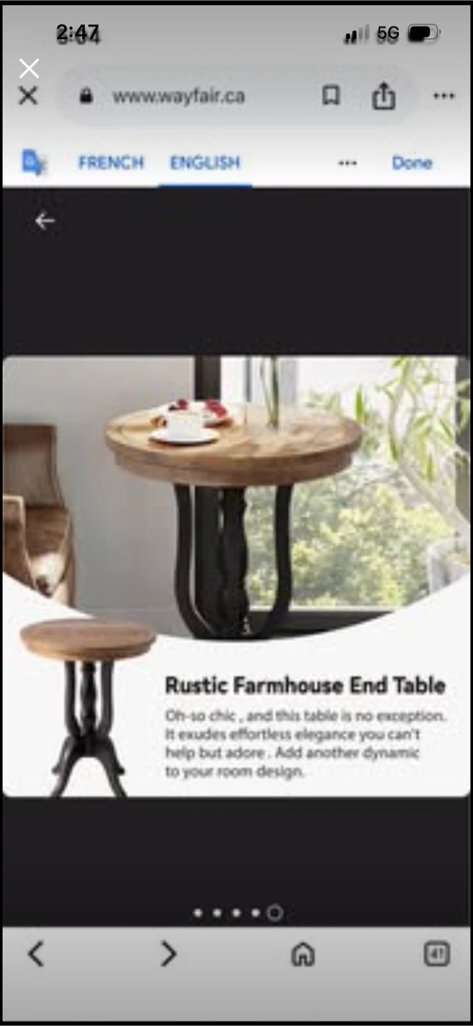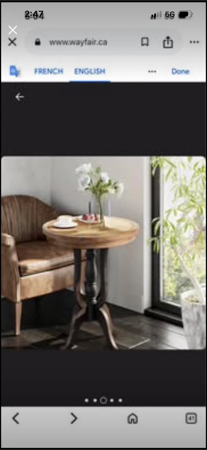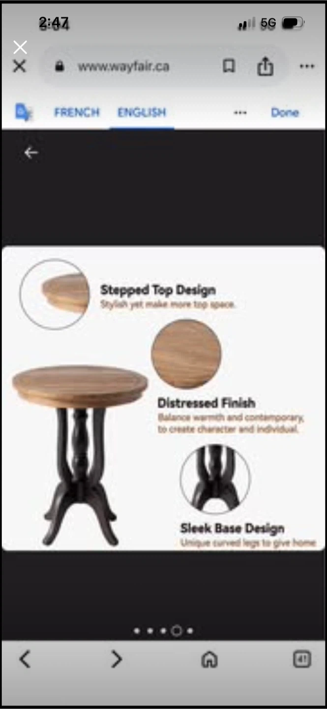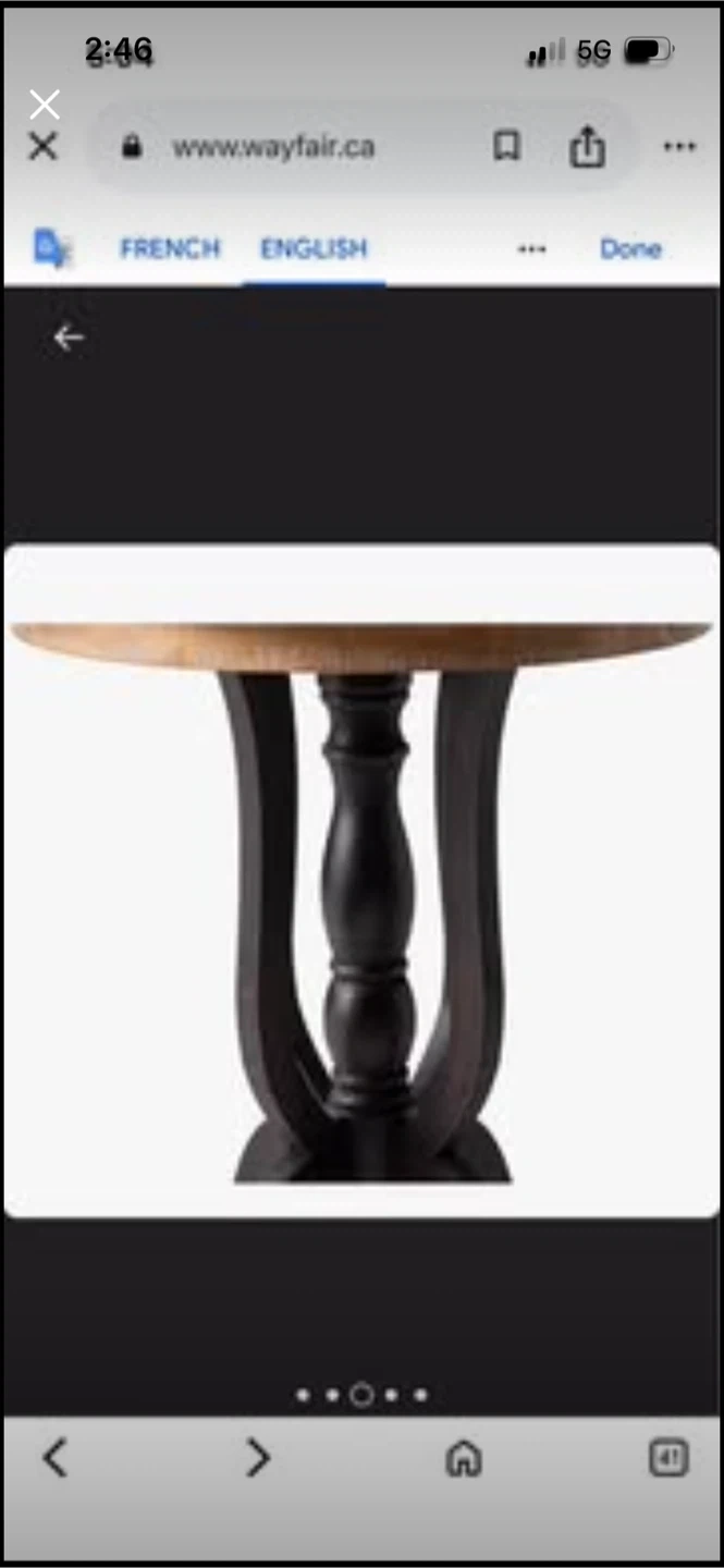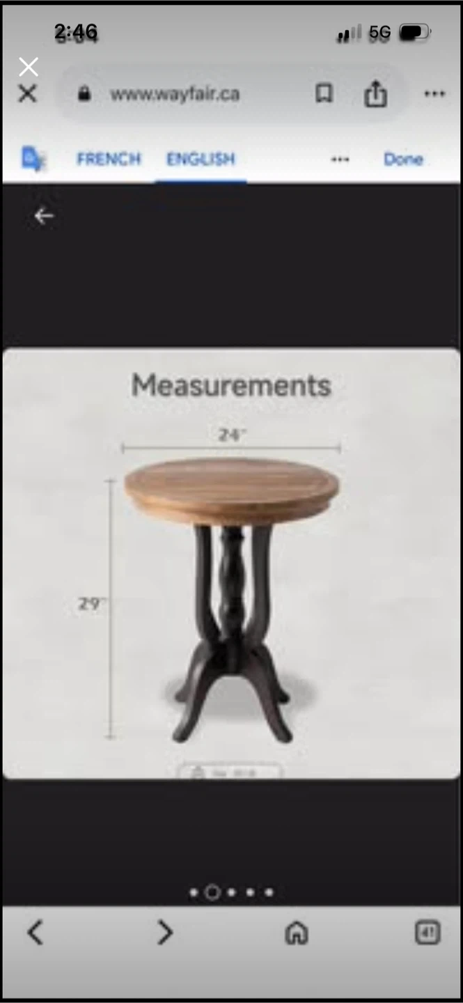This accent table has a round distressed wood top and a dark, sleek base. It's 29" tall with a 24" diameter top. This table's unique curved legs add character to any room.