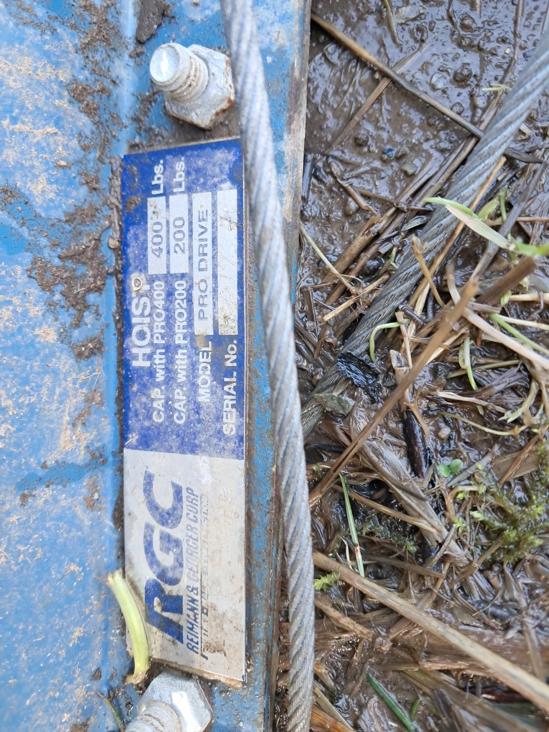 This is a Reimann & Geiger Corp PRODRIVE Platform Hoist for PRO200 & PRO400 models. It has a lifting capacity of 200 lbs with PRO200 and 400 lbs with PRO400. This unit is made in the U.S.A. and is designed for construction use. Roofers...etc...1000 o.b.o. or consider trade for?