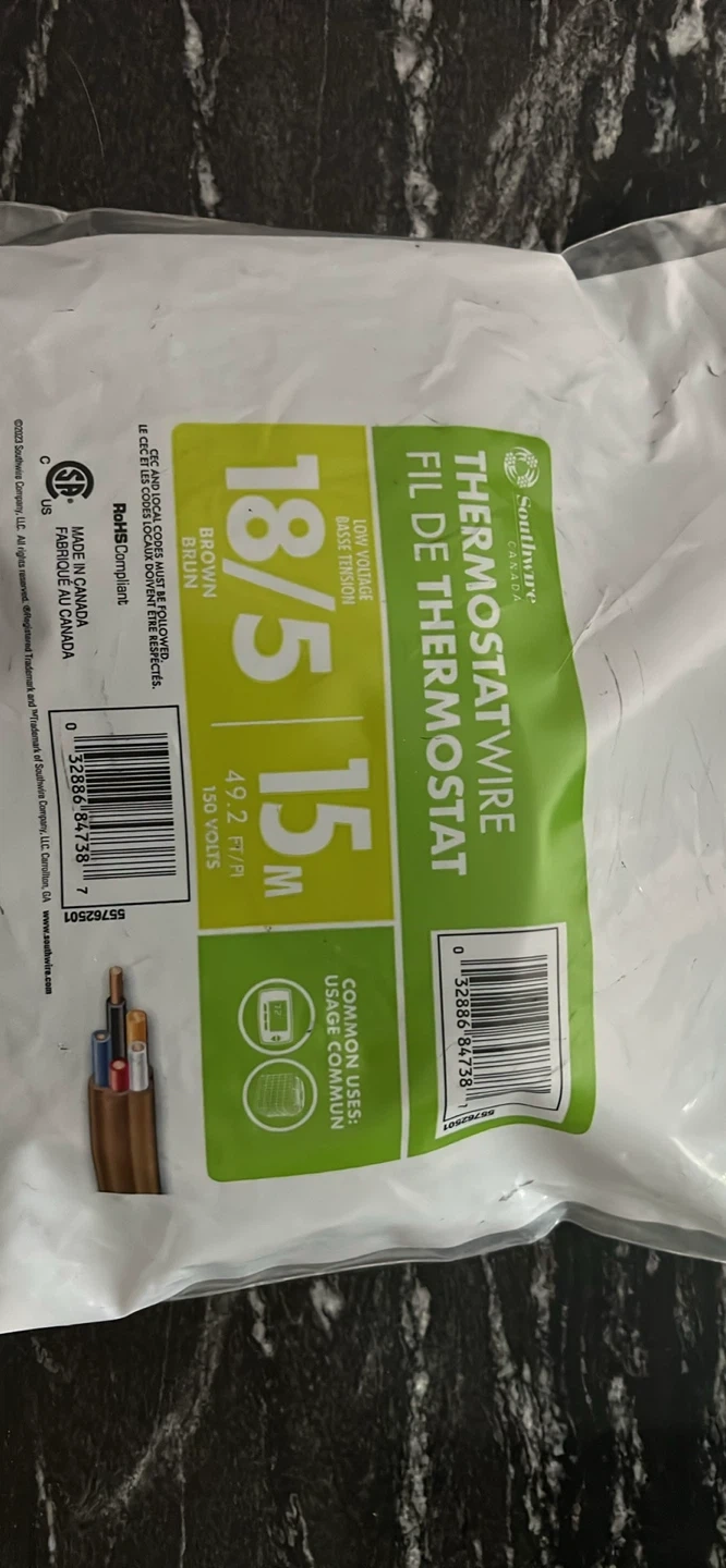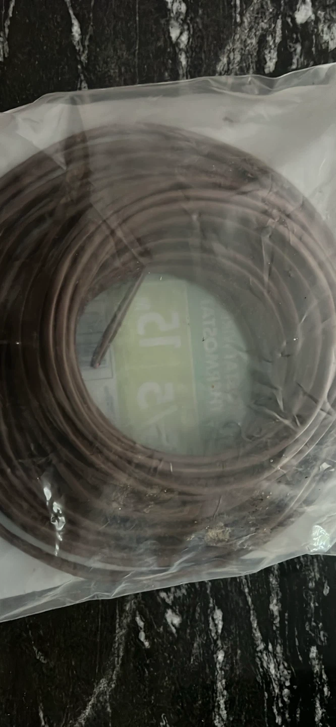 Southwire thermostat wire, 18 gauge, 5 conductor. It's 15meters long and brown. Common uses include thermostats and HVAC systems. Never opened.
