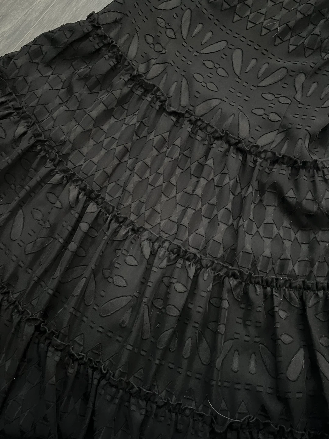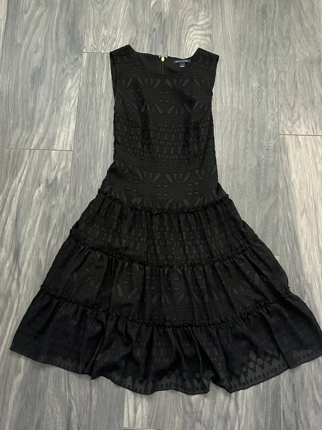 Tommy Hilfiger intricate floral-like designed black dress. Back zipper closure with "H" logo gold zipper. Great condition, no damage.