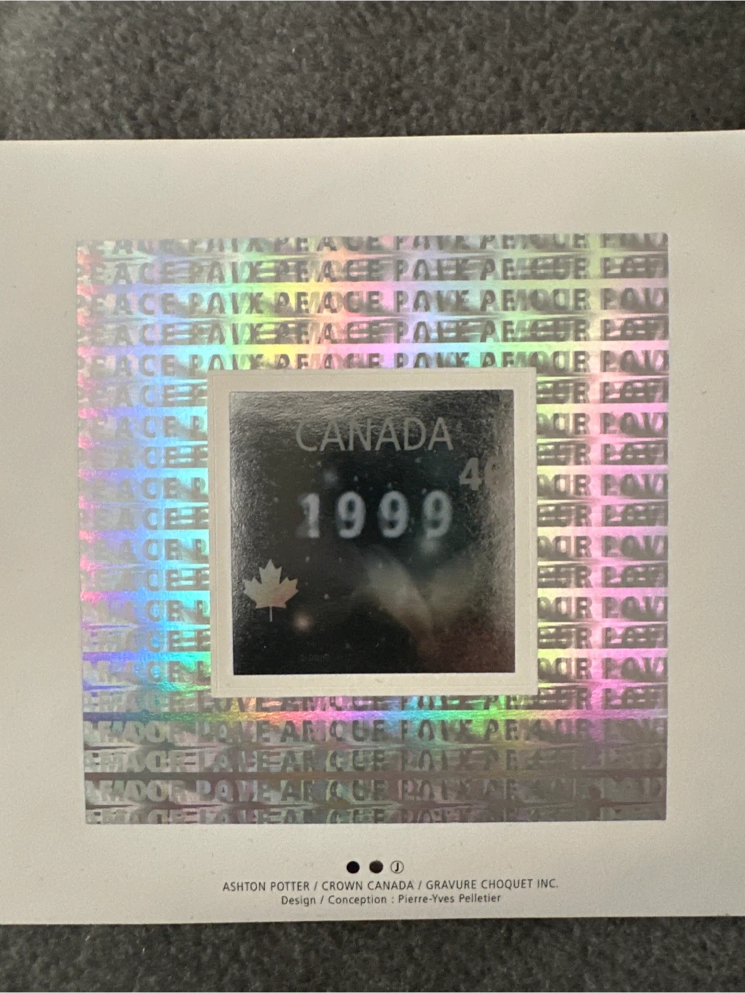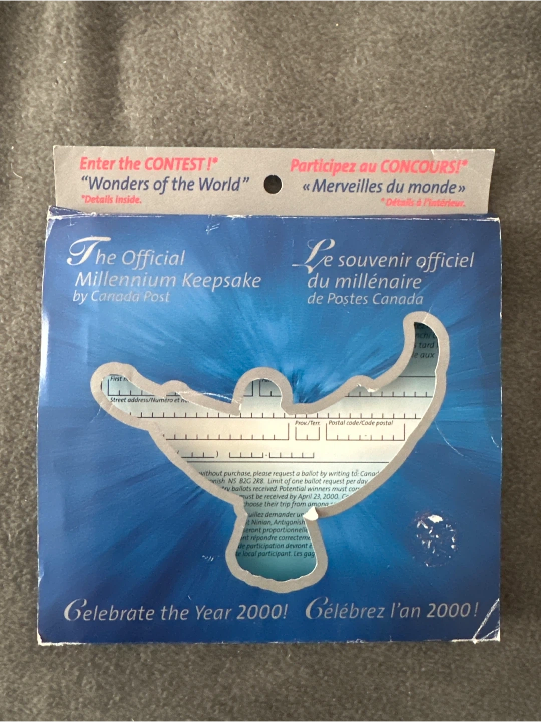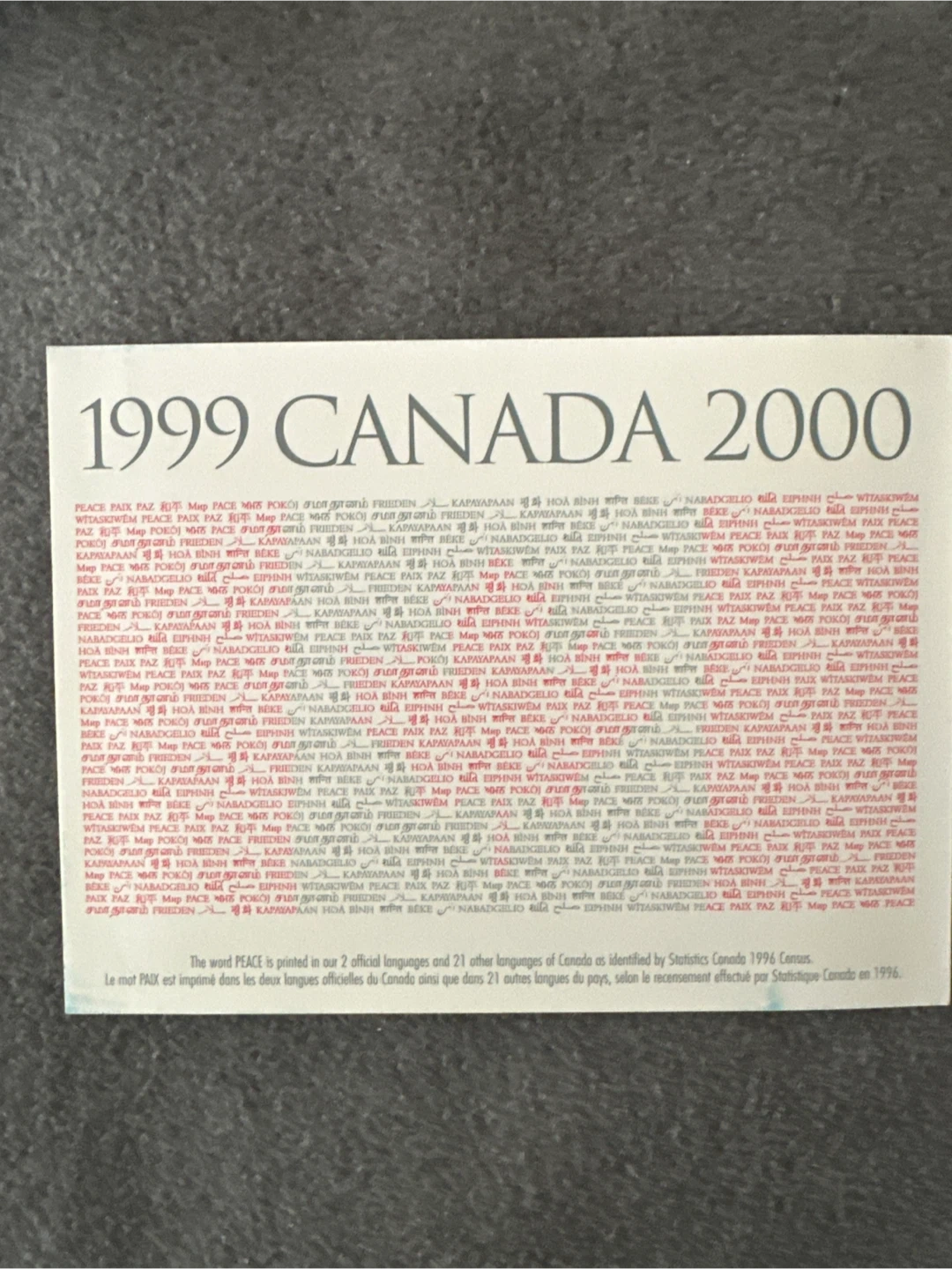 This is a 1999 Royal Canada Mint limited edition Millenium medallion in an exquisitely crafted metal box. The package features an embossed dove design on the lid, and includes mint postage stamps. Postcard included, as well as original Blue Dove cover.