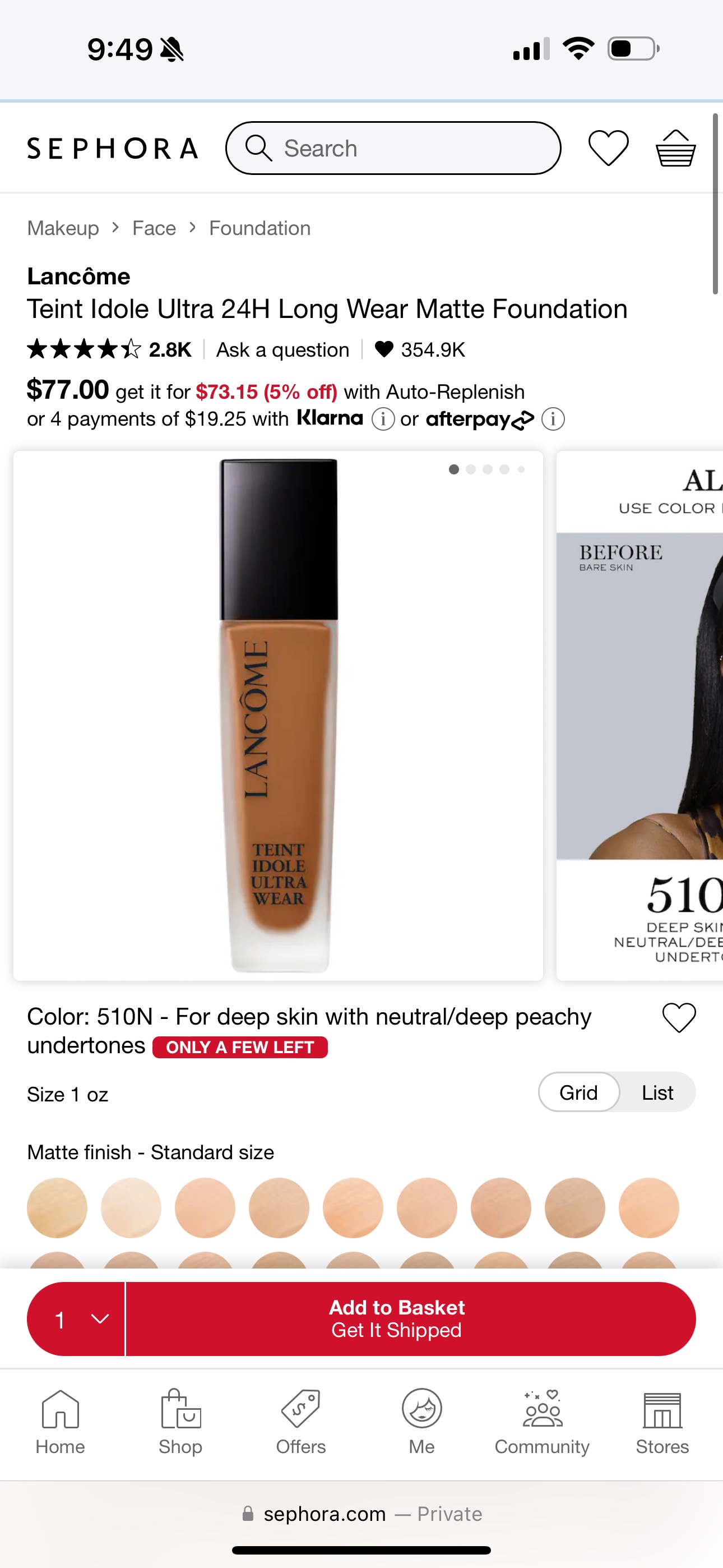 Lancôme Teint Idole Ultra Wear Foundation in shade 510N. Matte finish, 1 fl. oz.
