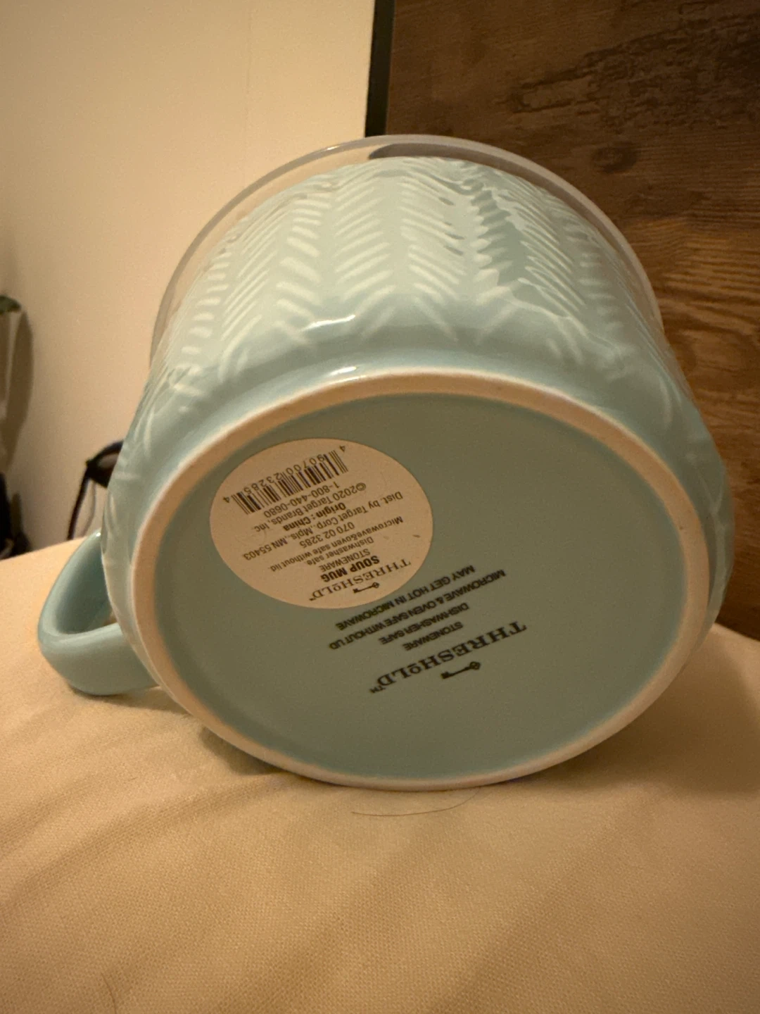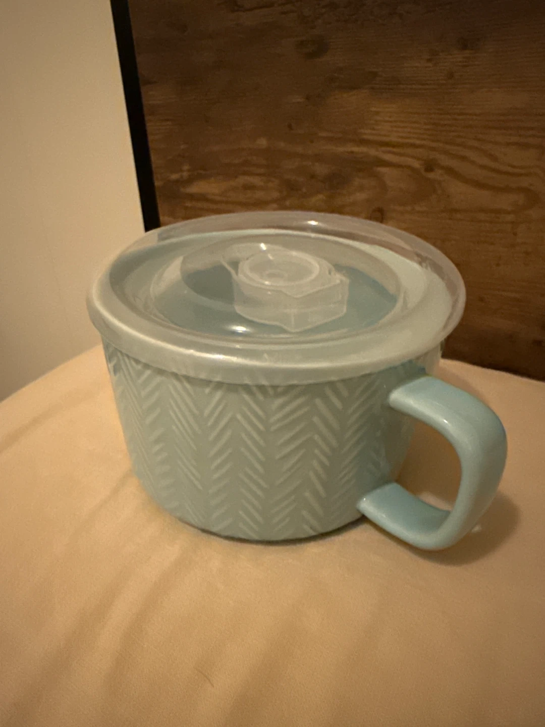 Selling a Threshold soup mug in light blue. It comes with a lid and is microwave and dishwasher safe. Perfect for enjoying a warm bowl of soup!