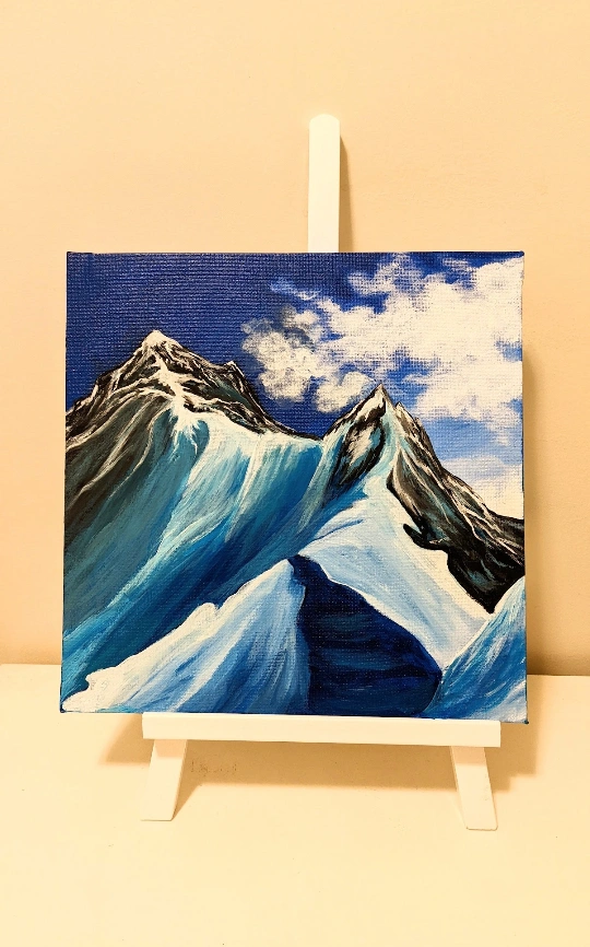 I am the painter of this mountain painting. Currently selling my art to raise funds for my solo trip to South America!