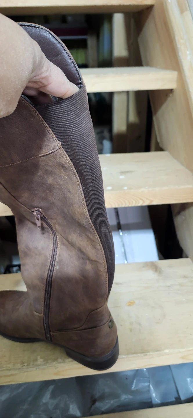 Here are some gently used Steve Madden riding boots in a lovely brown colour. They have a zipper on the side for easy wear and are perfect for fall and winter!