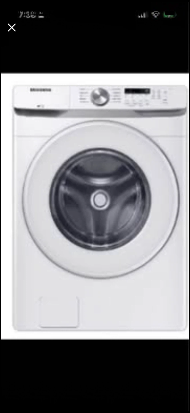 This is a white Samsung 7.5 cu ft electric dryer. Model DVE45T6000W. It's a front-load dryer, New Samsung 4.5 Cu Ft Washer