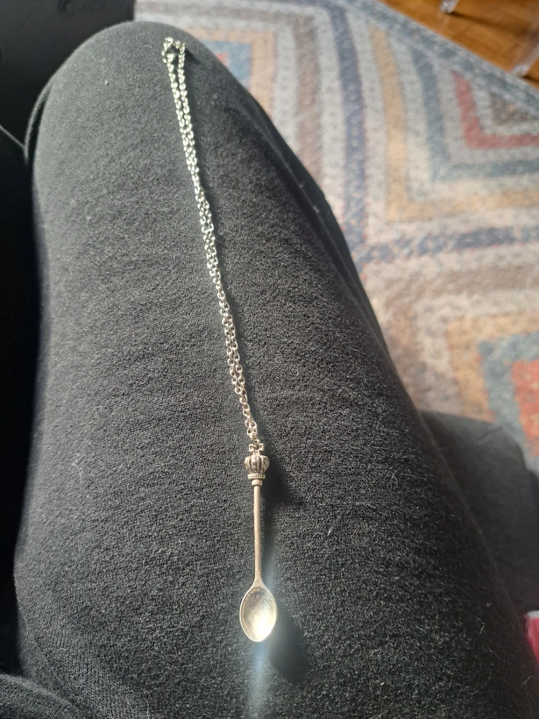 Silver party spoon Pendant Necklace with Crown Detail