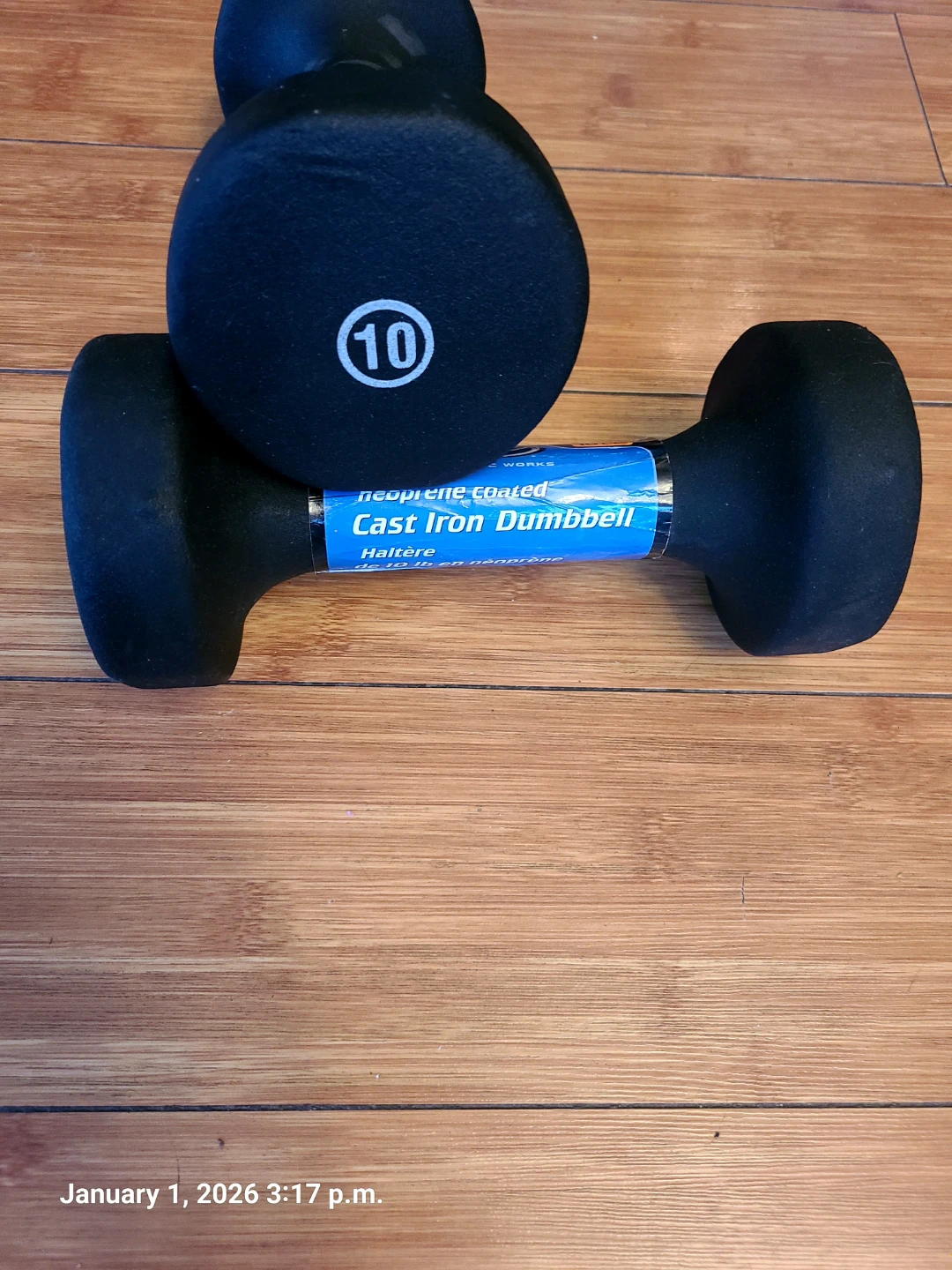 Selling a pair of 10-pound neoprene-coated dumbbells, barely used and in excellent condition.