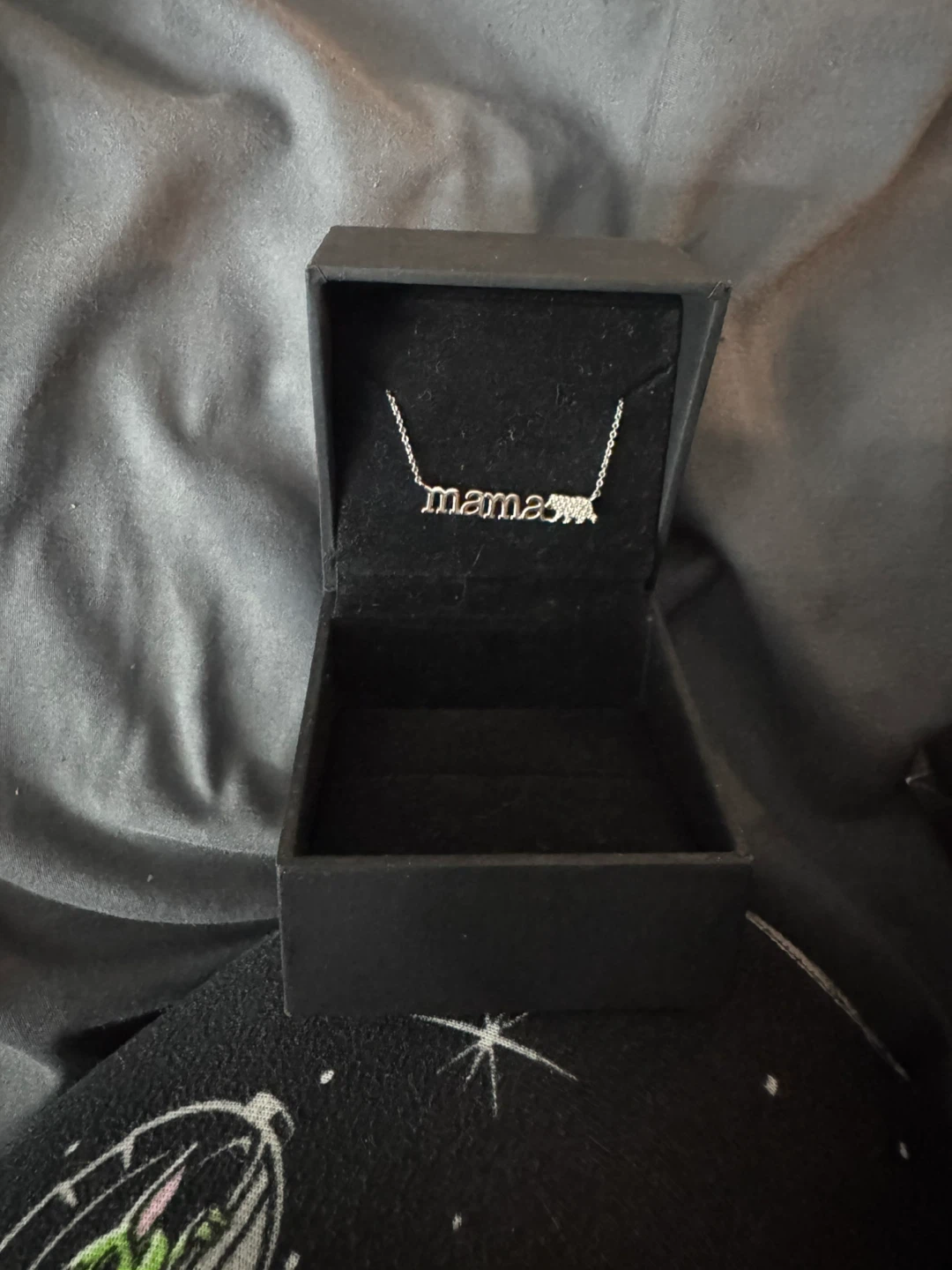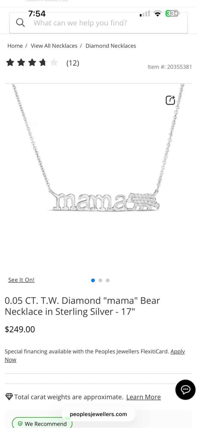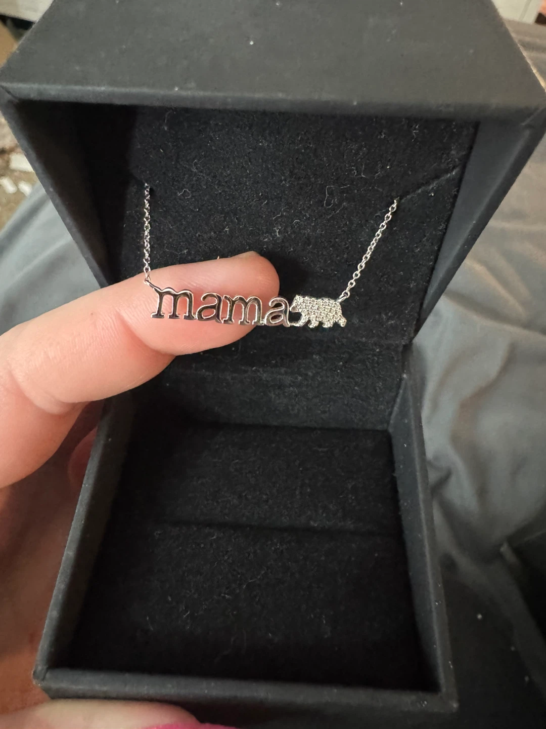 This diamond "mama" bear necklace is crafted in sterling silver. It's 17 inches long and features 0.05 CT. T.W. diamonds. The necklace comes in its original box.