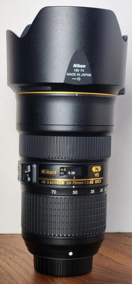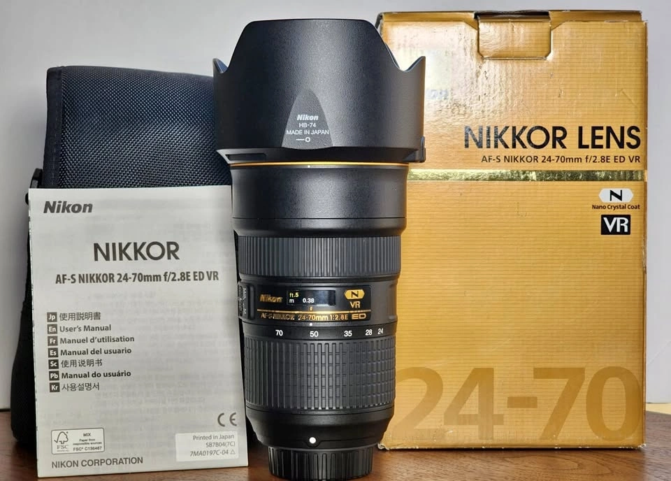 Please refer to the images. The item is in like-new, open-box condition with no problems. Includes genuine hood, caps, box, and papers (manual). Capture stunning images with this Nikon 24-70mm f/2.8 E VR AF-S Nikkor ED Zoom Lens, a must-have for any Nikon enthusiast. Designed for versatility and performance, this lens offers a reliable maximum aperture of f/2.8, allowing for excellent low light conditions and a pleasing bokeh effect. It's compatible with Nikon F mount cameras and is part of the acclaimed Nikon NIKKOR AF-S series, known for its quick and silent autofocus. With a focal length range of 24-70mm, this lens is ideal for a variety of shots, from landscapes to portraits. The inclusion of a variable aperture, auto and manual focus options, and compatibility with 82mm filters and lens accessories enhances its utility. Made in Japan, this lens model assures quality and performance that professionals and hobbyists alike can trust.