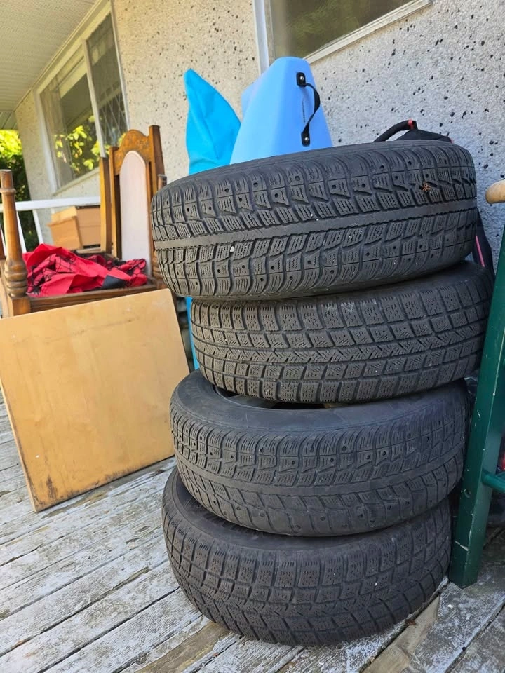 3 winter tires with 65%+ tread life left. 1 mud+snow tire has a tear and needs repair. All tires come with rims and are in good shape. Asking $200 for the set.