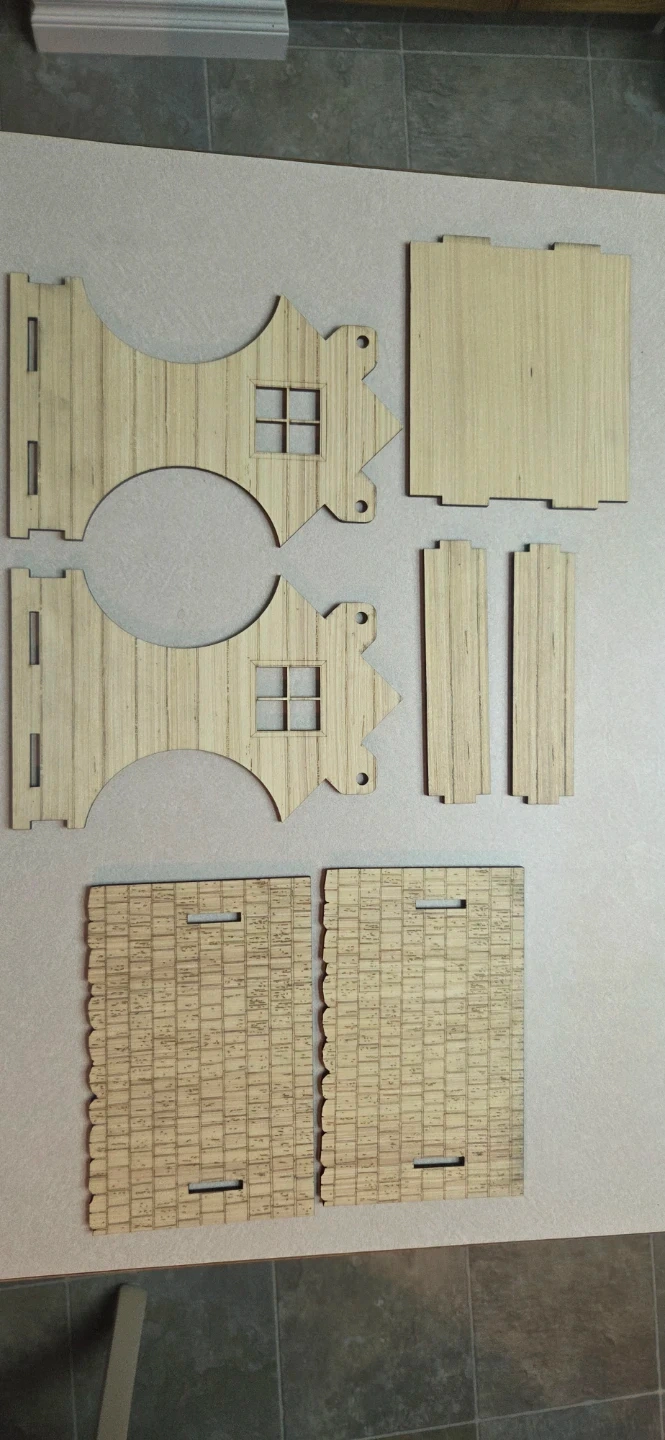 Here's a fun DIY wooden bird feeder kit! It comes unassembled, ready for you to put together and decorate. It would be a great project for kids or anyone who enjoys crafting. All the pieces are included to build the bird feeder as shown in the pictures.
