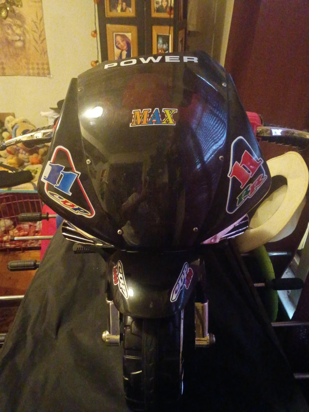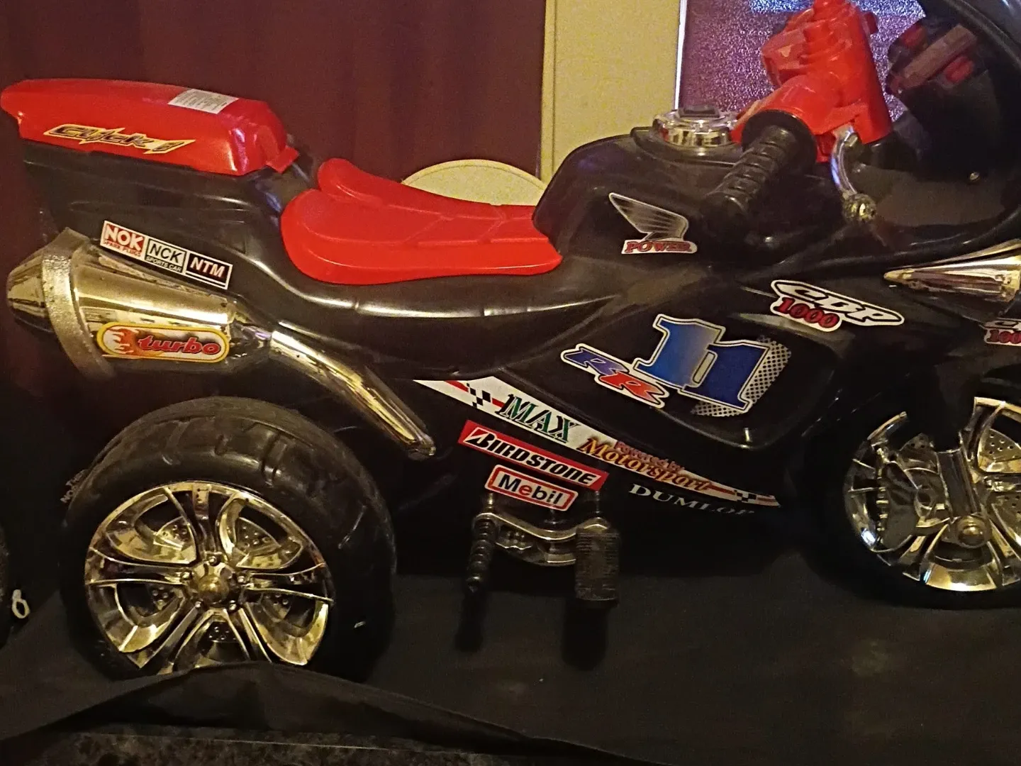 Selling a Power Max CBR 1000 kids ride-on motorcycle! It features a black and red color scheme and cool racing-inspired decals. Perfect for little ones who love motorcycles!