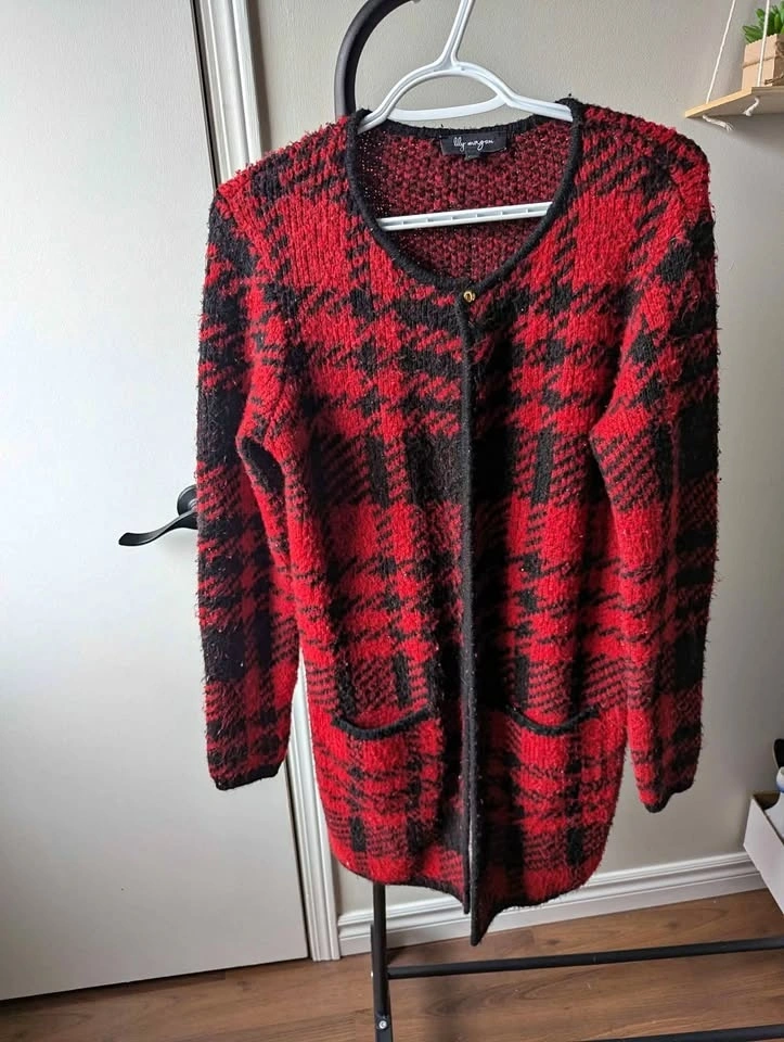 Buy & SellRed and black plaid women's cardigan sweaterRed and black plaid women's cardigan sweater$15Size medium. Final sale.WHERE TO MEETCheck LocationView MapSELLERverifiedMiss AFiddlesticks750 reviews0 chats·0 favorites·0 viewsSEND CHAT TO SELLERHi Miss A! I’m interested in your listing.Hi Miss A! I’m interested in your listing.Get the Karrot app to chatSign In to chat
