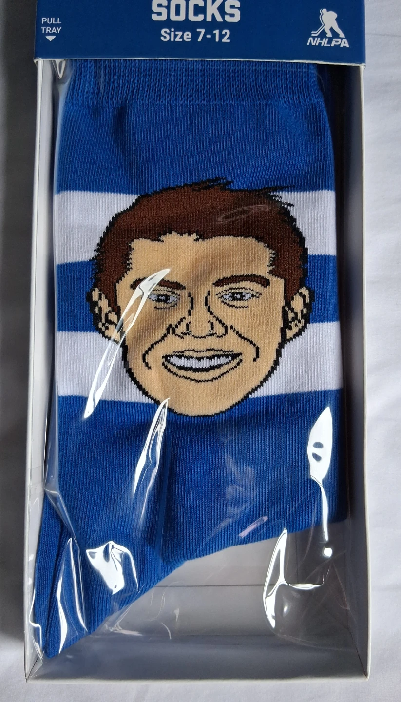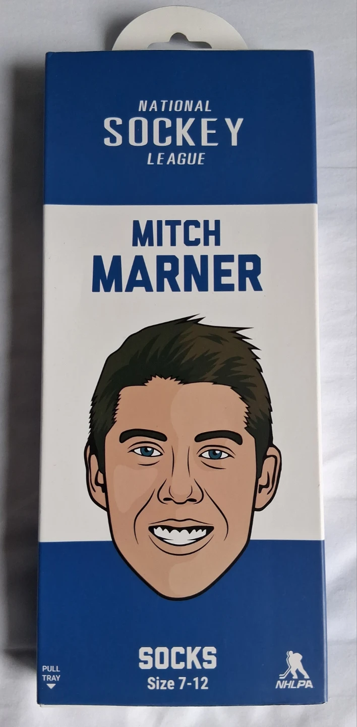 National Sockey League socks featuring Mitch Marner. They're size 7-12. When he was a Maple Leaf. New!