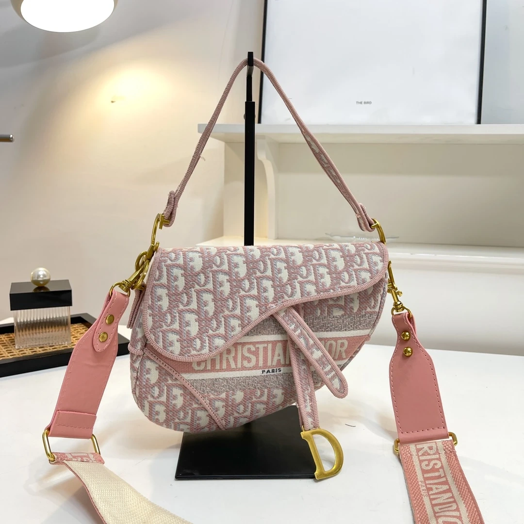 Saddle bag in pink with the iconic oblique canvas. It features a leather strap and gold-tone hardware. The bag is in great condition. It's a classic piece for any fashion enthusiast!