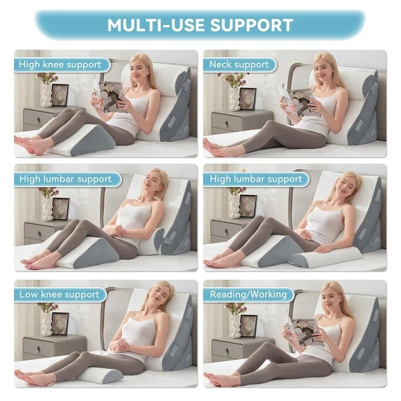 KINGFUN post-surgery bed wedge pillows are ergonomically designed to provides solid support your neck, shoulders, legs, and back at every angle. Find your most comfortable position and feel the wonders of a natural upright spine alignment while sleeping and sitting.