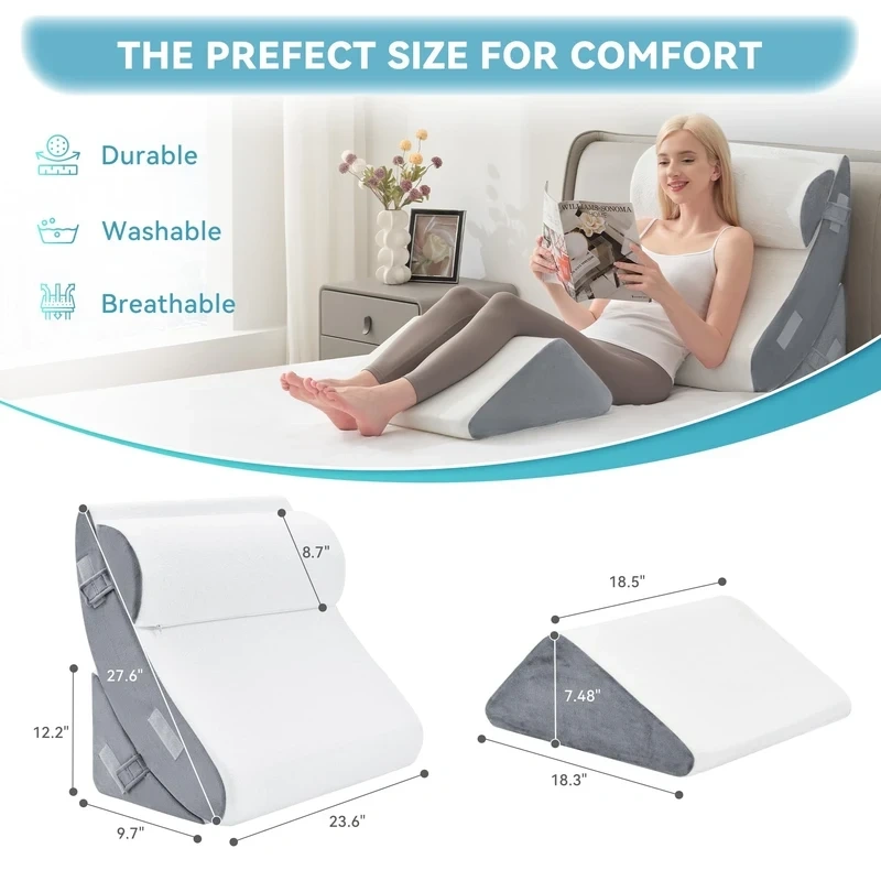 KINGFUN post-surgery bed wedge pillows are ergonomically designed to provides solid support your neck, shoulders, legs, and back at every angle. Find your most comfortable position and feel the wonders of a natural upright spine alignment while sleeping and sitting.