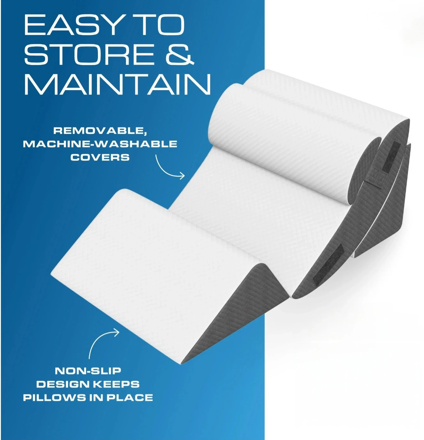 SOFT AND SUPPORTIVE MEMORY FOAM: All wedge pillows feature high density and better rebound memory foam, which can better fit your body curve and offer full support to your body so that reduces tossing and turning when you sleep. The memory foam wedge pillow wouldn't be flattened and keep its shape after long-term use.