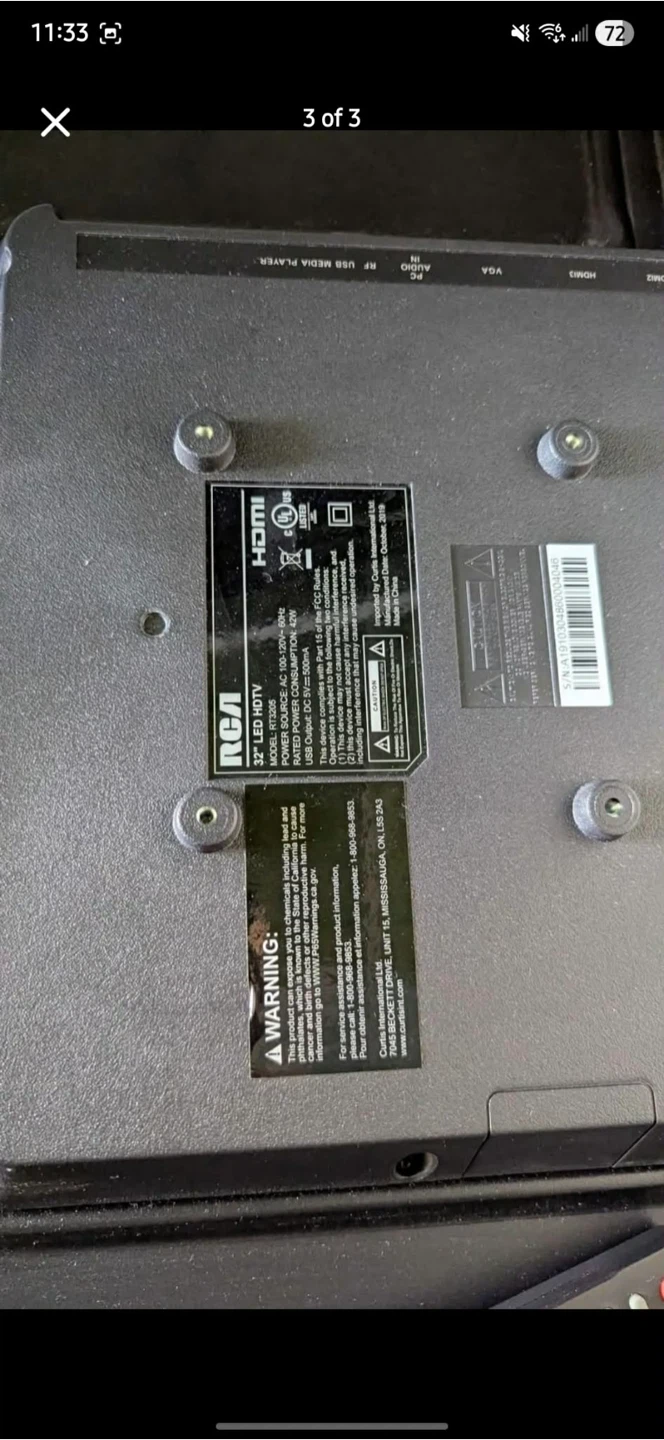 1 / 31 / 3Buy & SellRCA 32" HD LED TVRCA 32" HD LED TV$65RCA 32 inch HD LED television. Model: HTS320. Includes remote and power cord. It's a great size for a bedroom or smaller living space!ConditionLike newBrandRCAWHERE TO MEETDowntown DenningersView MapSELLERverifiedDavisDowntown Hamilton670 reviews2 chats·1 favorites·55 viewsSEND CHAT TO SELLERHi Davis! I’m interested in your listing.Hi Davis! I’m interested in your listing.Get the Karrot app to chatSign In to chat