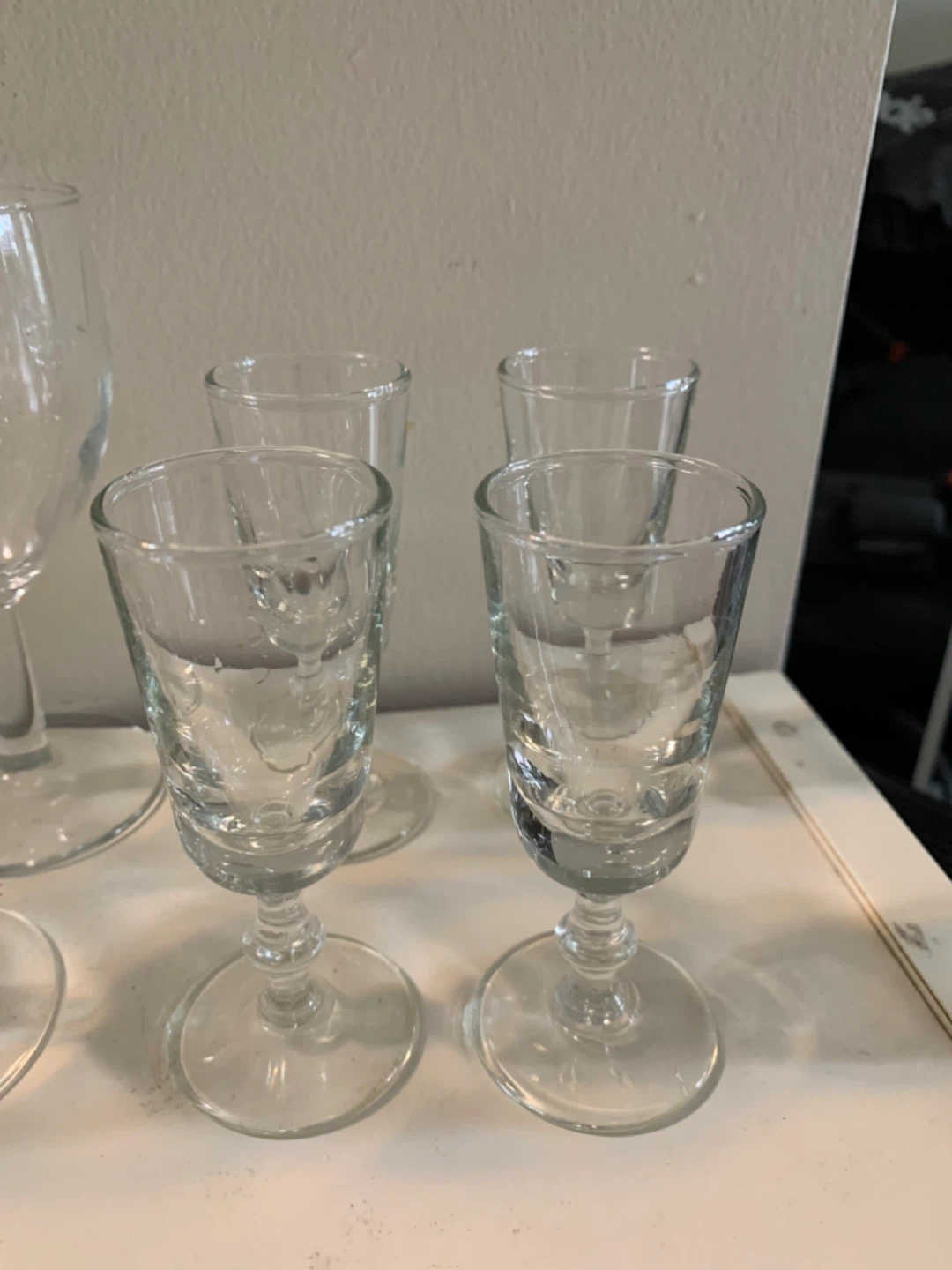 Selling a set of clear cordial glasses. They're in great shape and perfect for serving after-dinner drinks or liqueurs. Add a touch of elegance to your next gathering with these charming glasses! Poqo