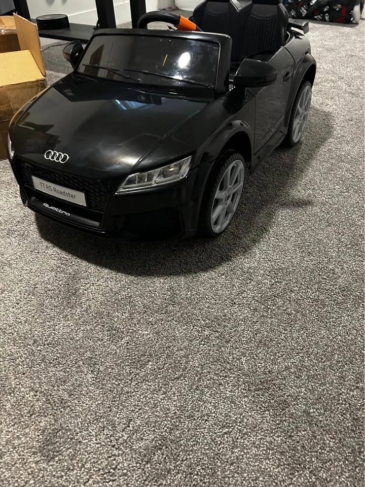 Brand new, officially licensed Audi kids ride-on car. Comes with a remote control, suspension wheels, and adjustable speed. A perfect gift for kids! Black color.
