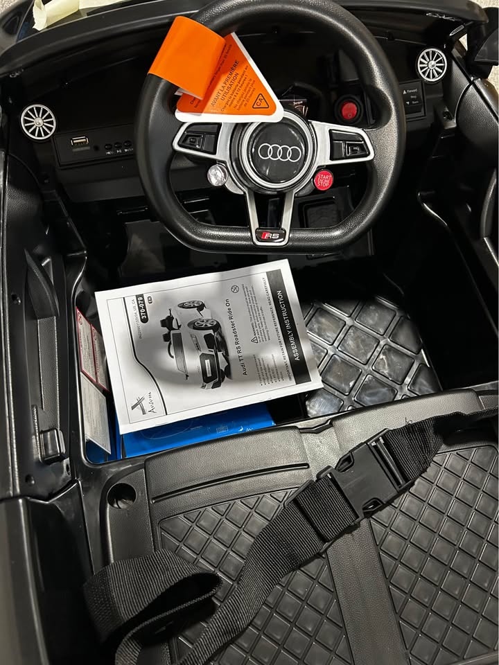 Brand new, officially licensed Audi kids ride-on car. Comes with a remote control, suspension wheels, and adjustable speed. A perfect gift for kids! Black color.