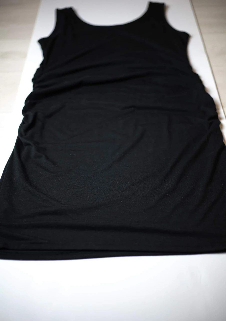 customized maternity dress used once for photoshoot- gentle used- in good condition colour: Black stretchy on the sides for growing belly. Size: XL Great for photoshoot, party or special event