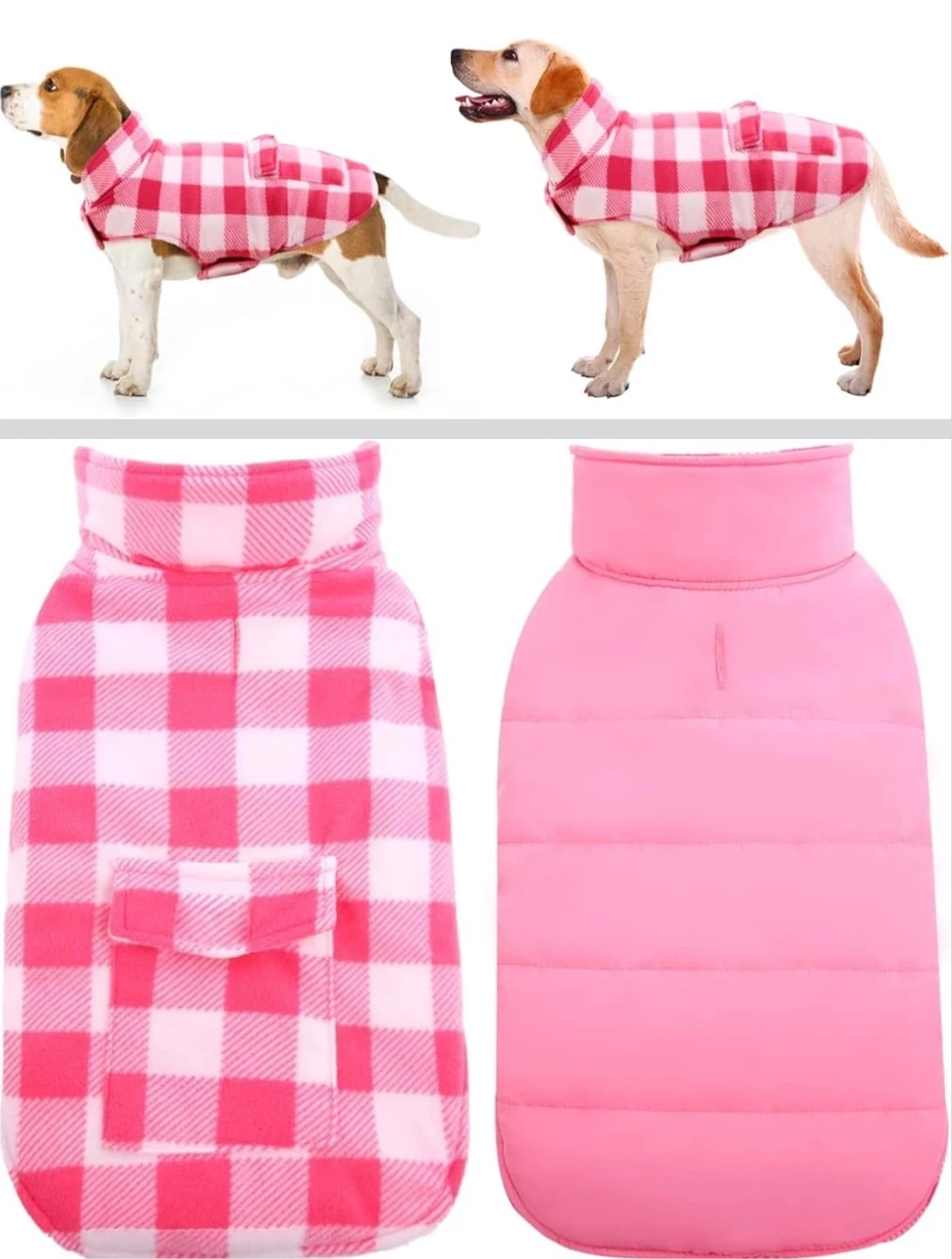 XL Pink Plaid Reversible Dog Winter Coat – Waterproof(brand new)
