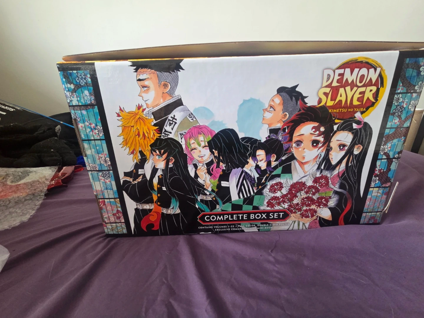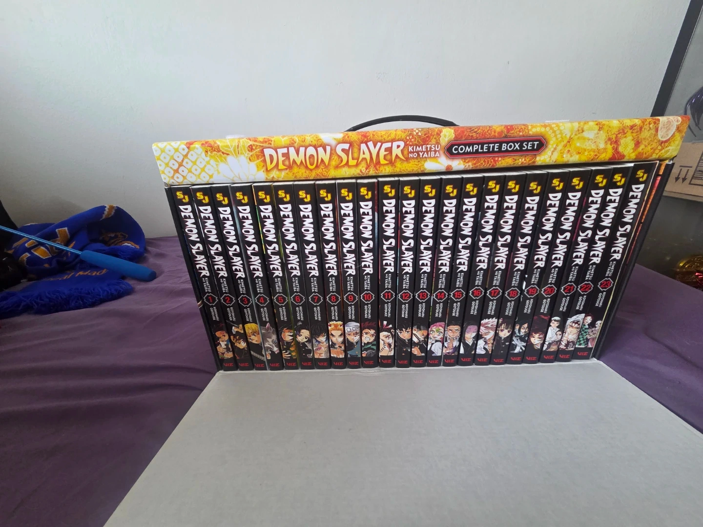 This is the complete box set for Demon Slayer: Kimetsu no Yaiba manga, including volumes 1 through 20. These are full-color, double-sided volumes. Perfect condition